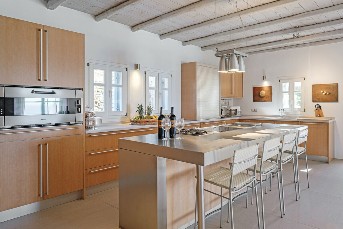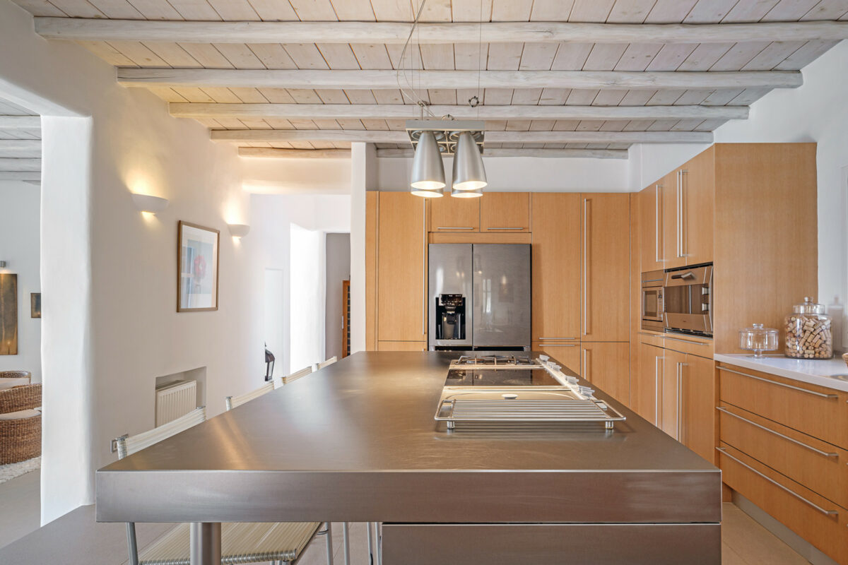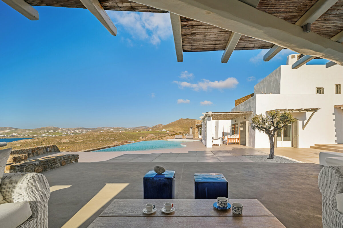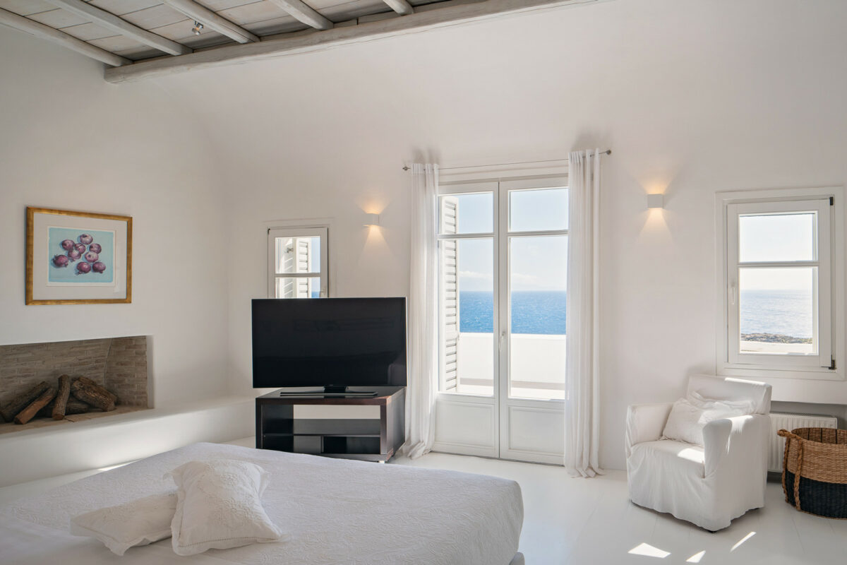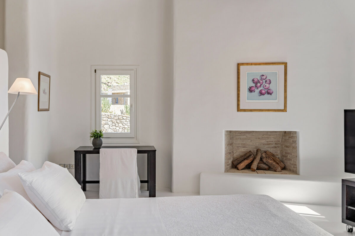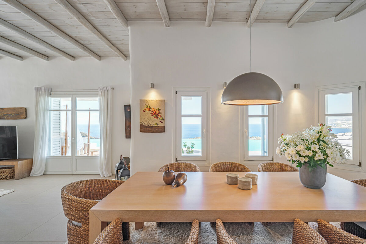 The property's design embraces the traditional Cycladic style with a modern twist, the combination of white plaster, wooden casings and ceilings, and cement mortar for the floors and bathrooms creates a cool and refreshing atmosphere. The minimalistic furniture and decor add to the overall ambiance, immersing guests in the charm of the Cycladic environment.
