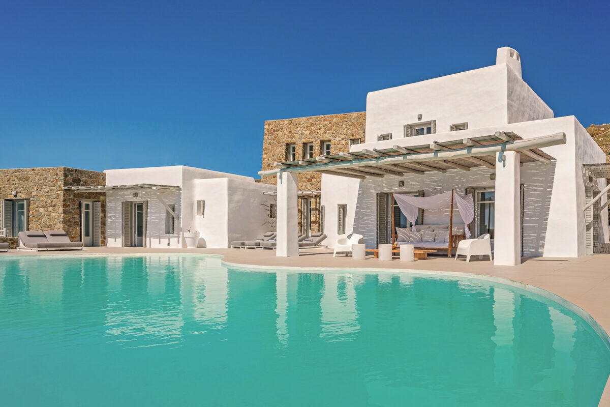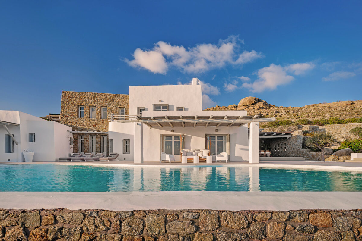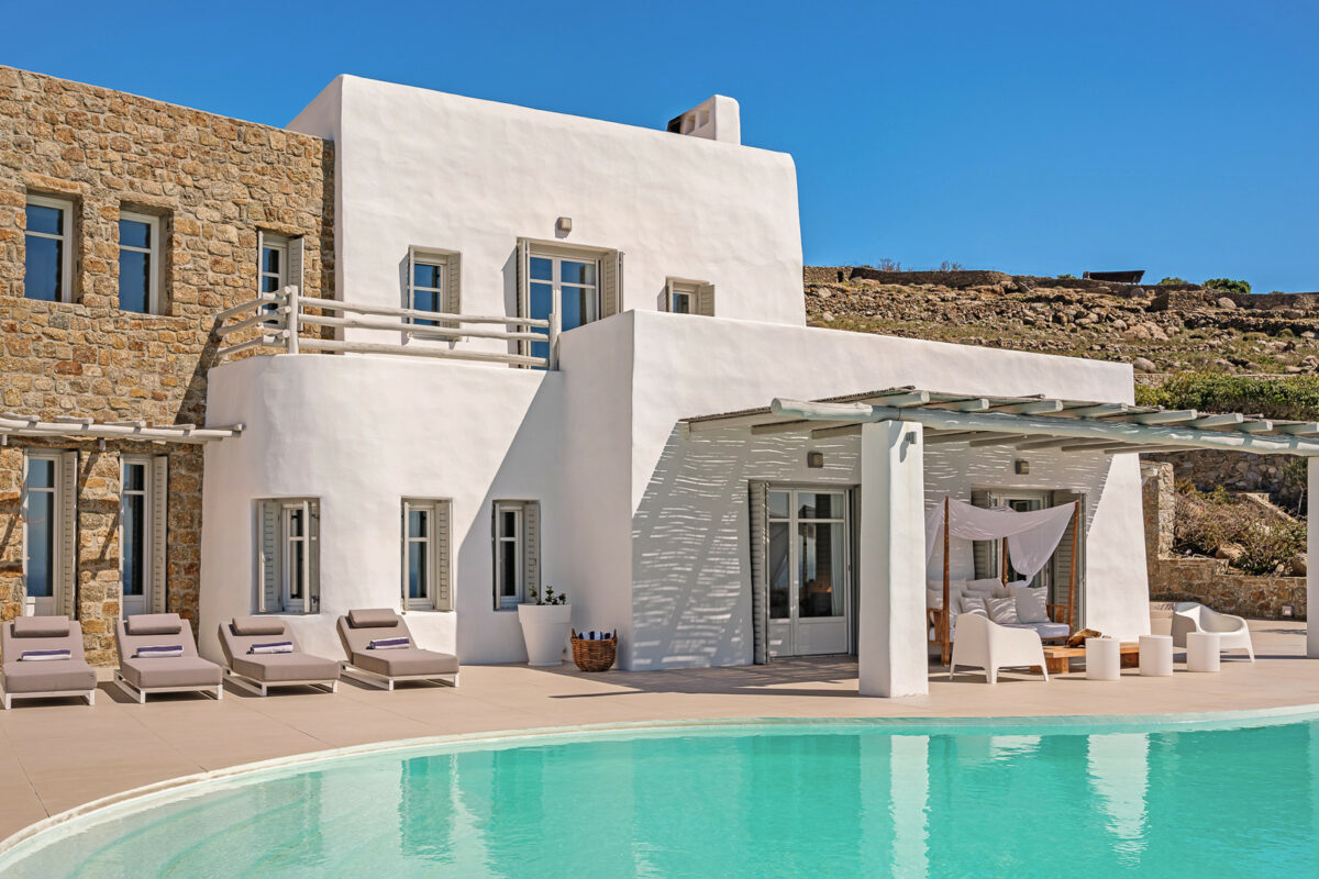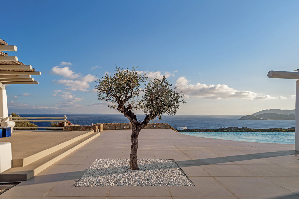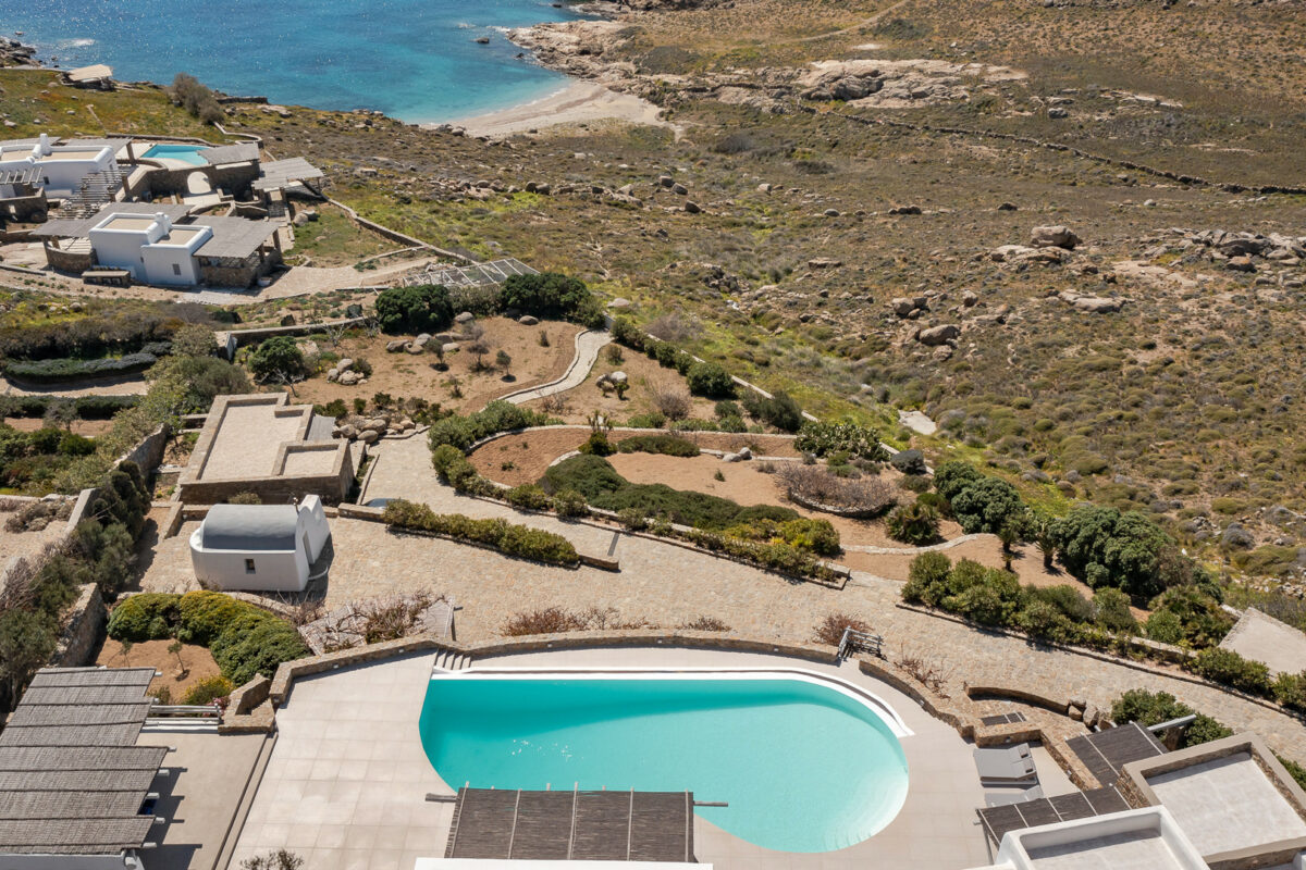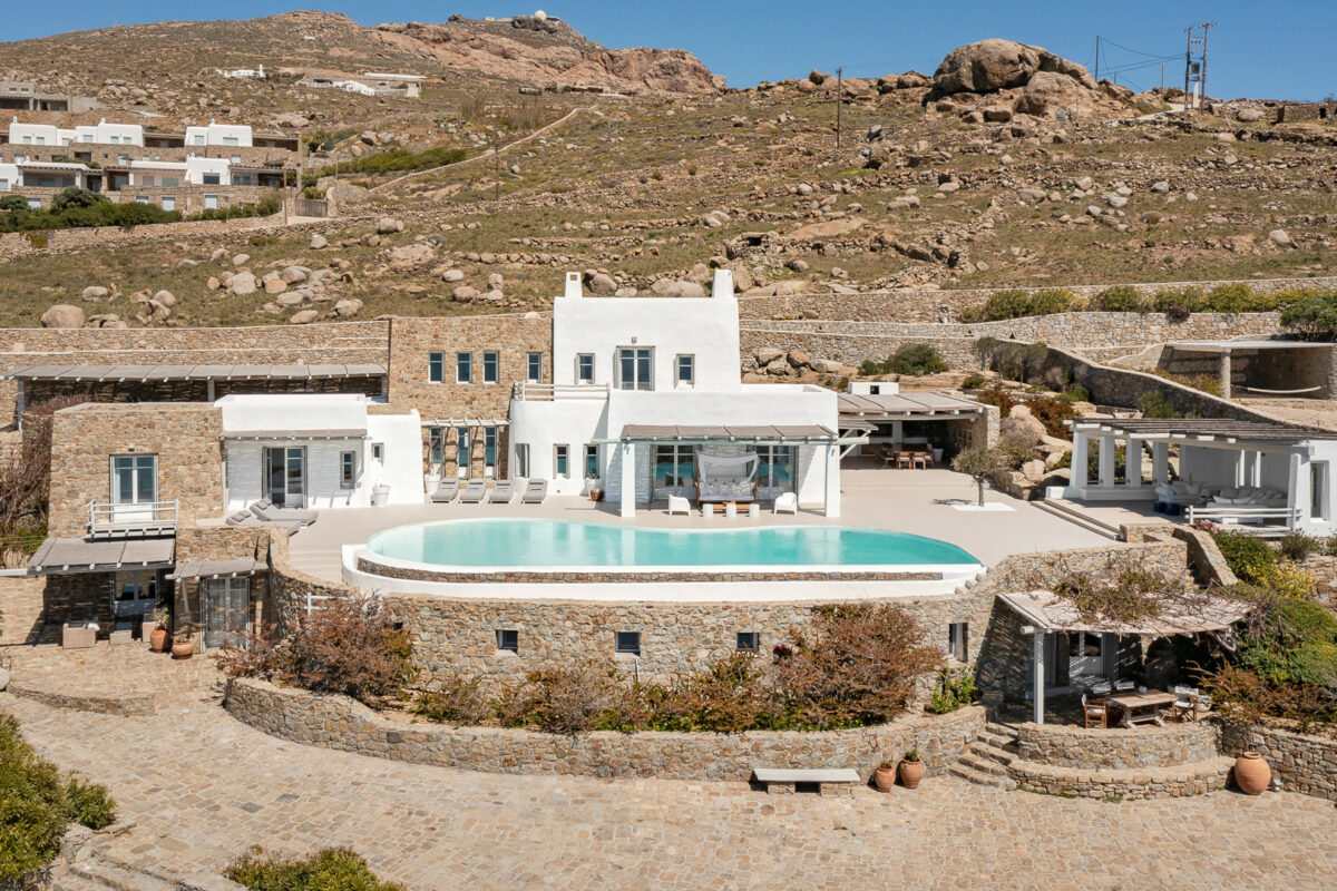 Villa Aegean Pincess, situated in the picturesque southern part of Mykonos, is a truly magnificent and stylish residence; it is conveniently located just a short 5-minute drive from Lia Beach and a mere 3-minute walk from a private beach. As you approach the villa, the stunning white-washed exterior stands out against the rugged landscape and the deep blue sea, creating a mesmerizing and dream-like setting.