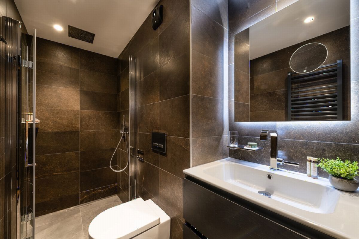 Présentant un design alpin chic raffiné, qui dégage une atmosphère élégante et chaleureuse, l'espace de vie principal de l'Alaska Lodge 3 offre tout ce dont vous pourriez avoir besoin pour des vacances au ski. Des touches de bleu royal et de brun foncé apportent une atmosphère chaleureuse à cet espace, également contribuée par la cheminée unique et la bonne quantité de meubles somptueux qui remplissent la pièce.