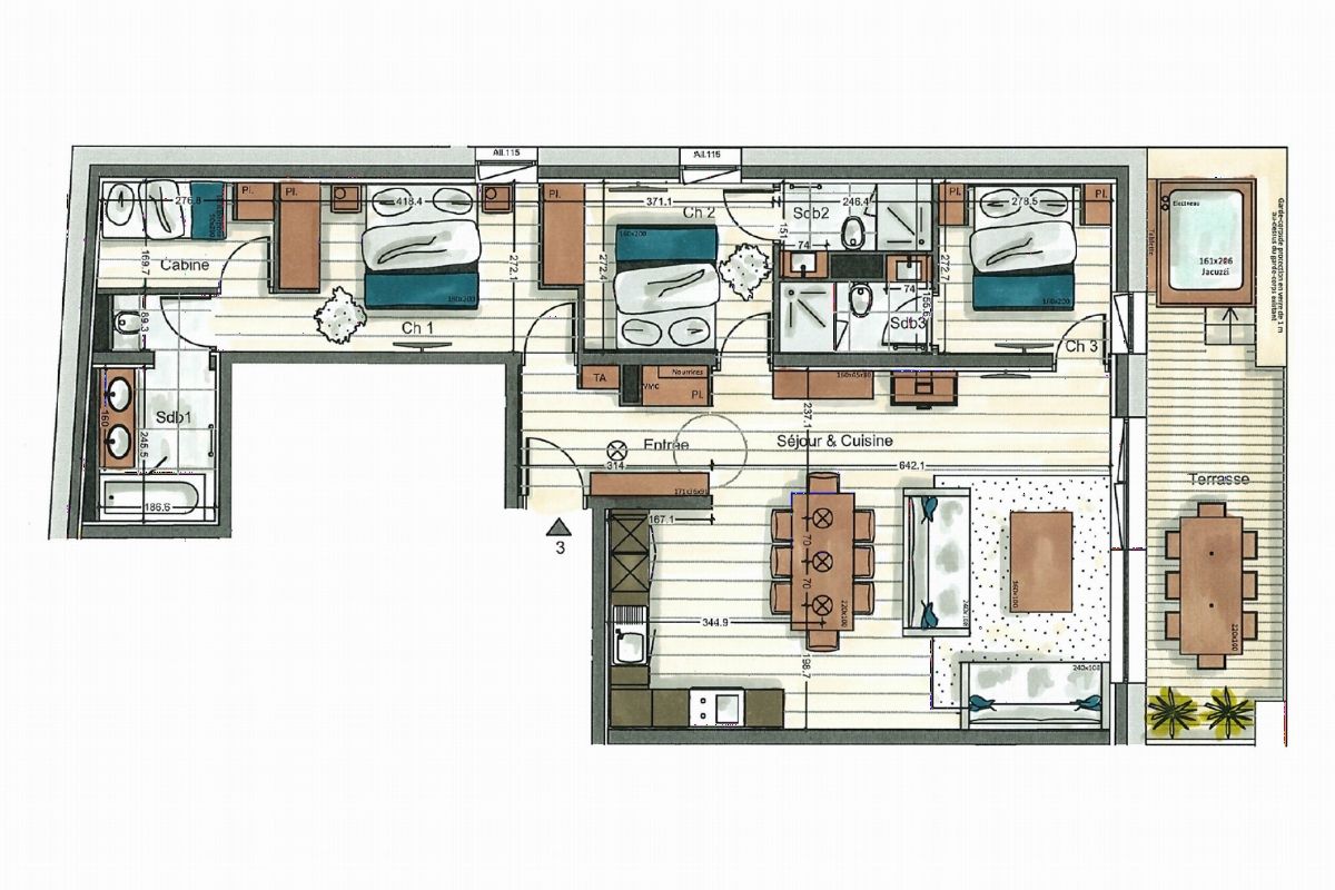 accessible que par la pièce 1 et est une cabine sans fenêtre