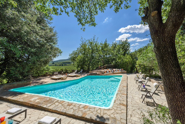 This estate consists of 3 houses, you have the main house with rustic decor and very homely, a typical Tuscan style villa. You will feel at ease immediately. Then there is a wing and optional there is also a guest house. The villa offers wonderful views over Tuscany and especially the pool area is breathtaking, with hills and vineyards.