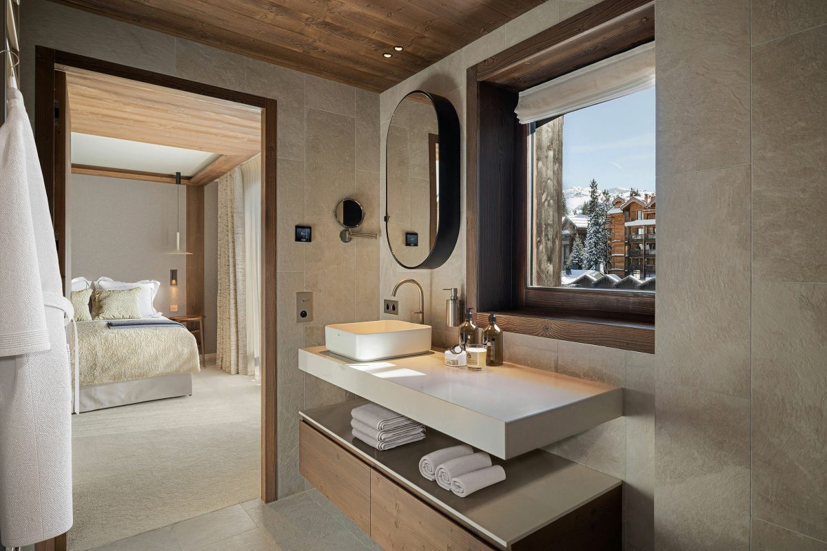 The residence offers a complete wellness area : a 22 m indoor pool, sauna, hammam, fitness/yoga room, herbal tea room, and more. A gourmet restaurant by Danny Khezzar (Bayview, Geneva) and a ski shop complete the residence's amenities.
