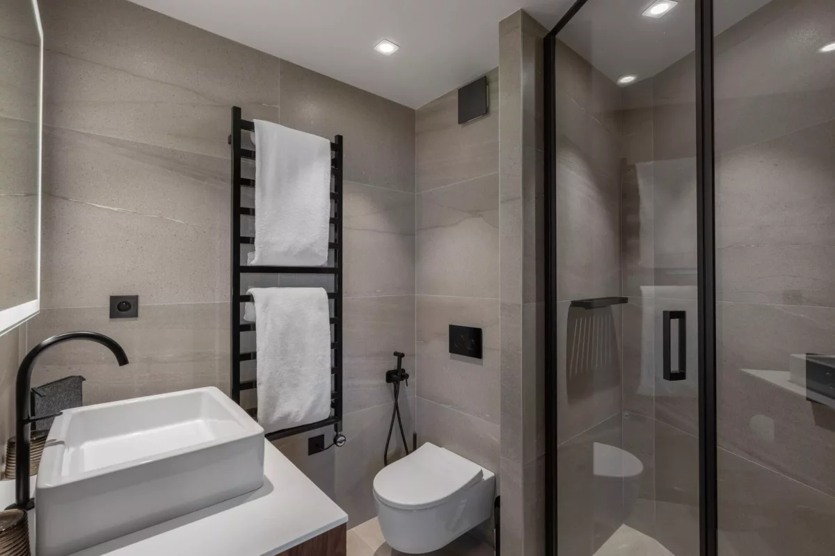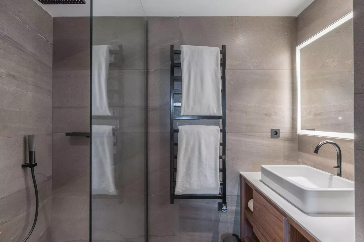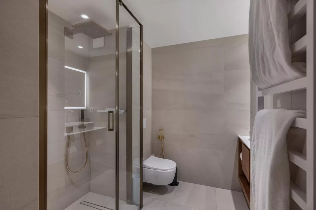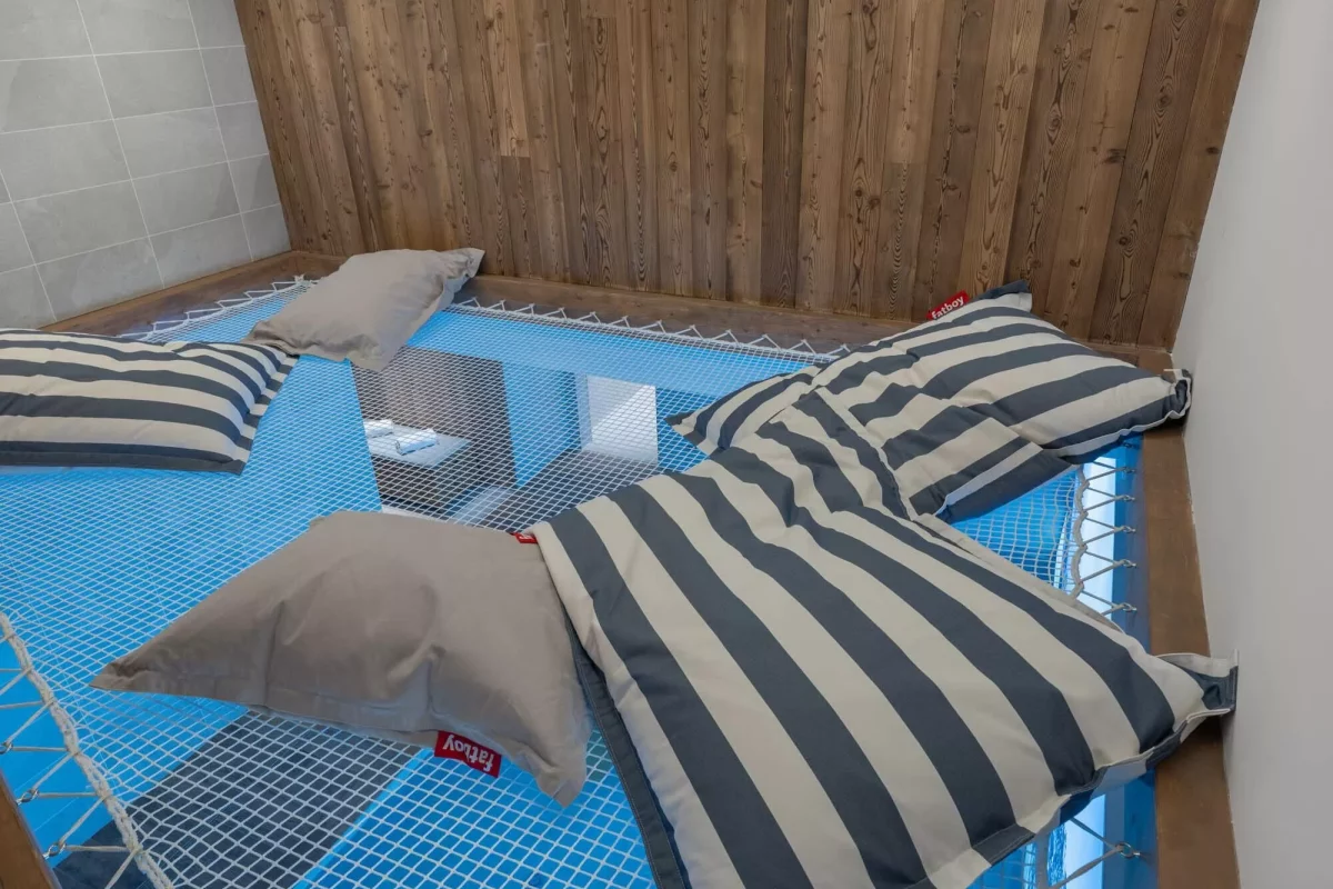 The residence features a wellness area where you can unwind, including a jacuzzi, swimming pool, Nordic bath, massage room, and an outdoor Norwegian sauna. A fitness room is also available for guests.