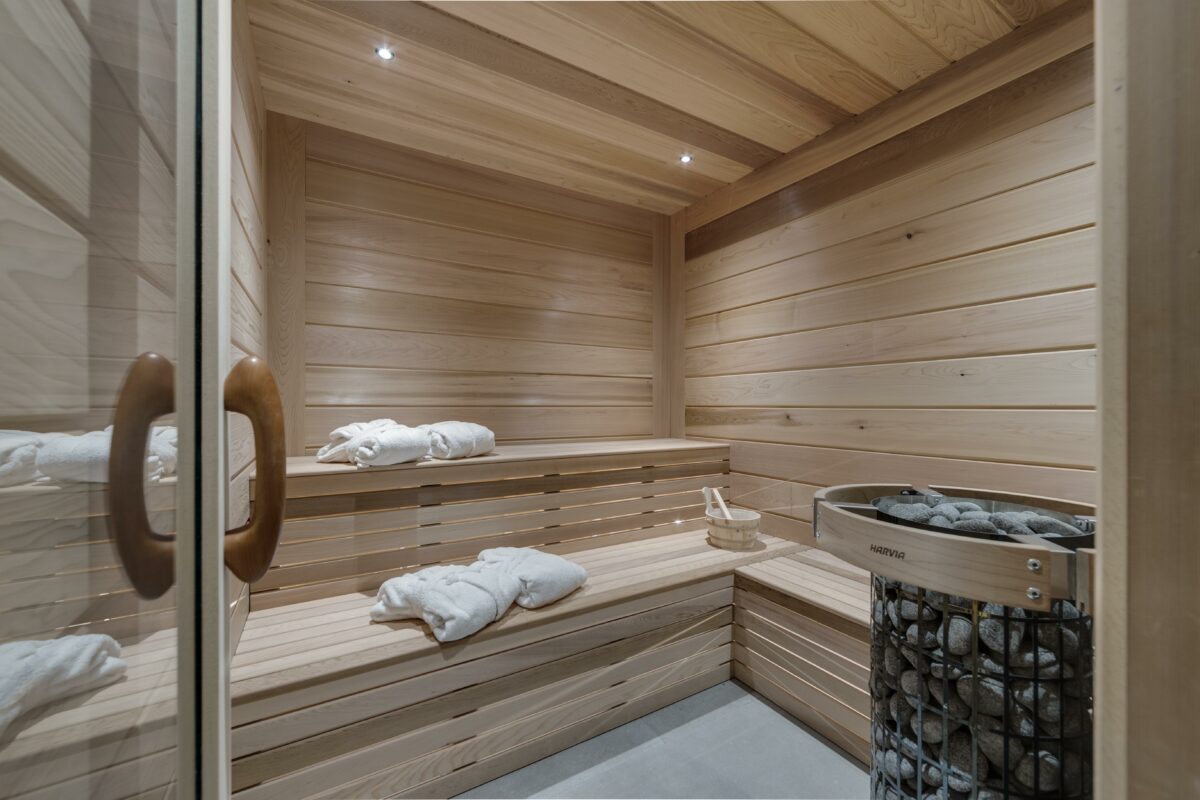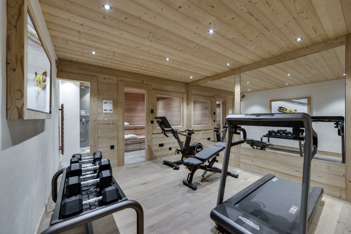 The apartment, with its modern design, creates a friendly and welcoming atmosphere. Common areas include an area dedicated to well-being, where a gym equipped with high-end equipment is at your disposal. A sauna is also present to offer you a well-deserved moment of relaxation after a day spent on the slopes.