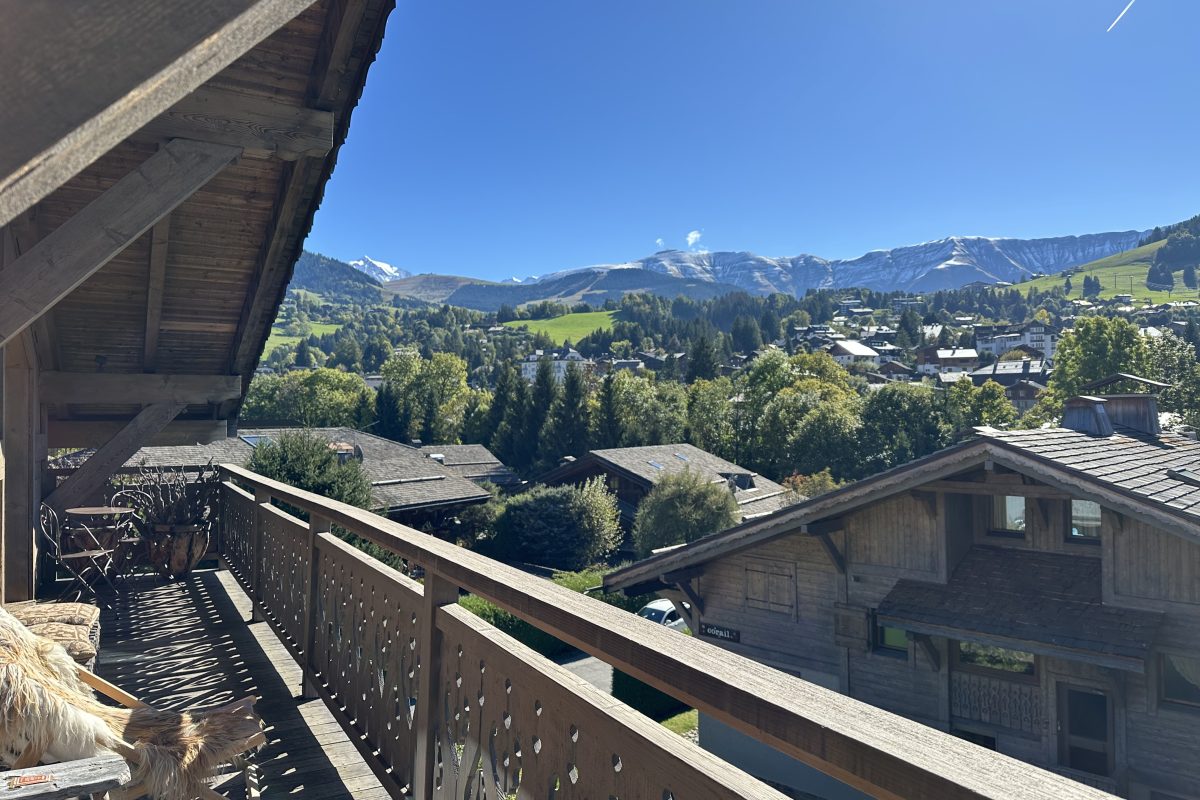 The sunny balcony offers stunning mountain views, perfect for appreciating the fresh Alpine air.