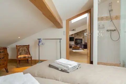 > Chambre n°2 : Deux lits simples (2x70cm), douche