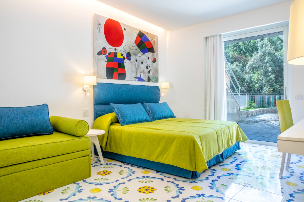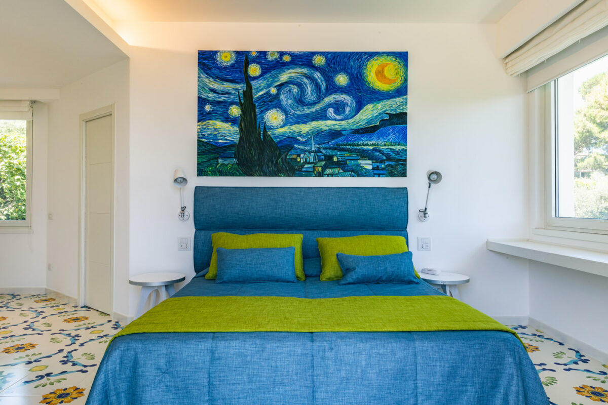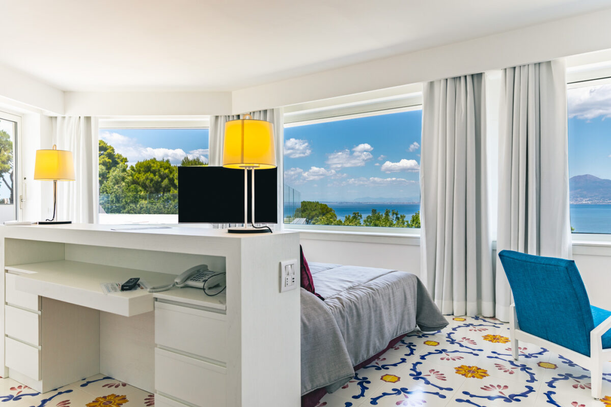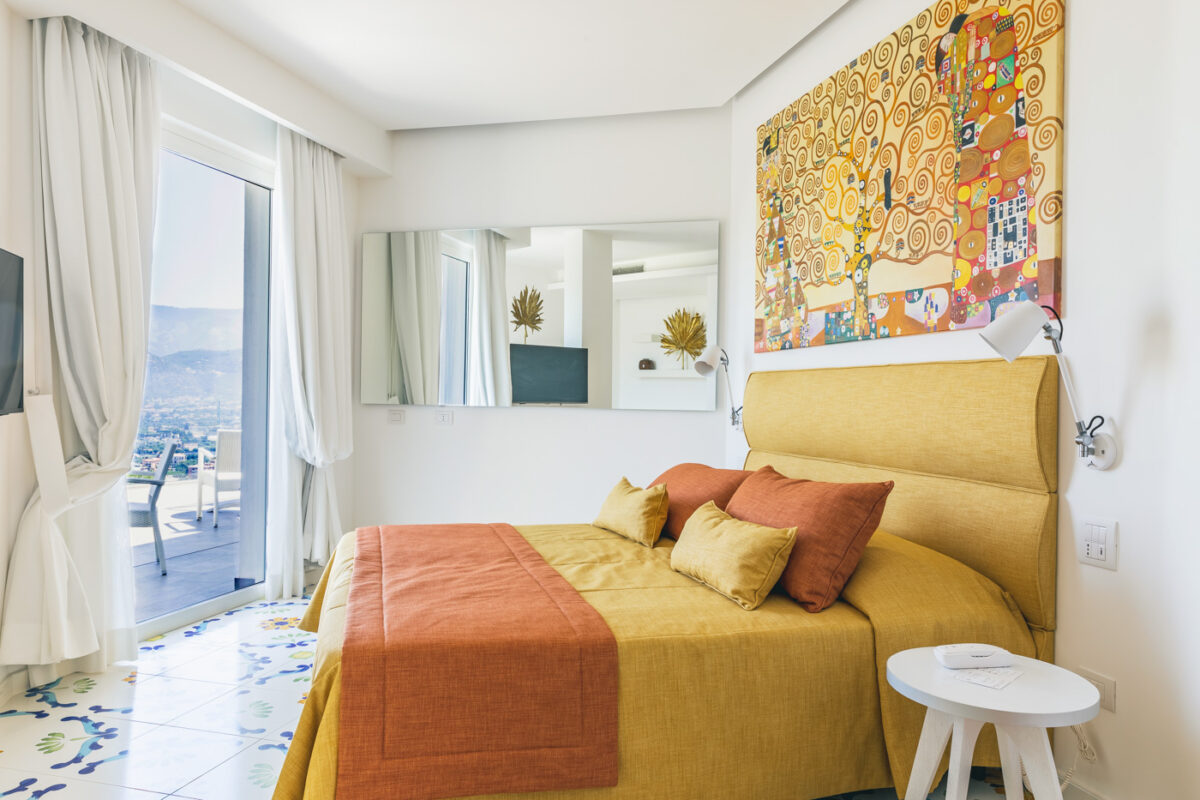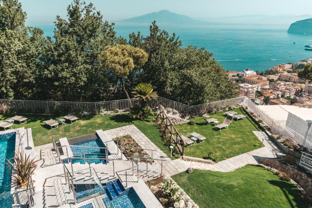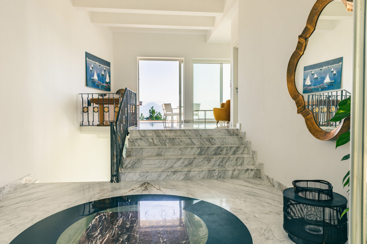 The Sorrento Coast brings everyone together: sea lovers, mountain enthusiasts, gourmand buffs, and even shopaholics. Slightly less known than its south-exposed counterpart, this area offers many opportunities for scenic hiking excursions in the mountains, dives in shimmering crystal waters, as well as unique gastronomic gems and typical stores and boutiques. The beating heart of this blessed land is Sorrento, the verdant coastal city where Artemunda is located. The four-floored luxury villa was originally built in 1962 and recently gut-renovated, in 2020. It offers an unbeatable vista above the city and the Gulf of Naples in the distance. It is the perfect starting point for day trips to visit iconic sites such as Pompeii, Positano, Amalfi, and Ravello.