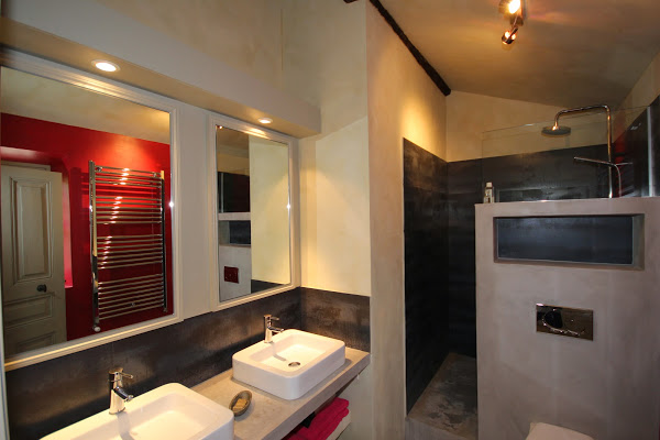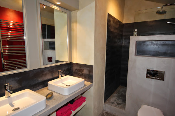 bedroom 2 : bed 180cm . bathroom (open shower, 2 sinks,