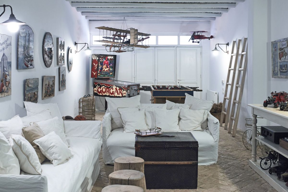 Perfectly in line with Cycladic charm, the property is spread across three levels. The main level features an inviting infinity pool and a spacious pergola providing pleasant shade for the outdoor dining area. The well-manicured garden surrounds the building, offering various furnished and designed relaxation corners for guests to unwind.