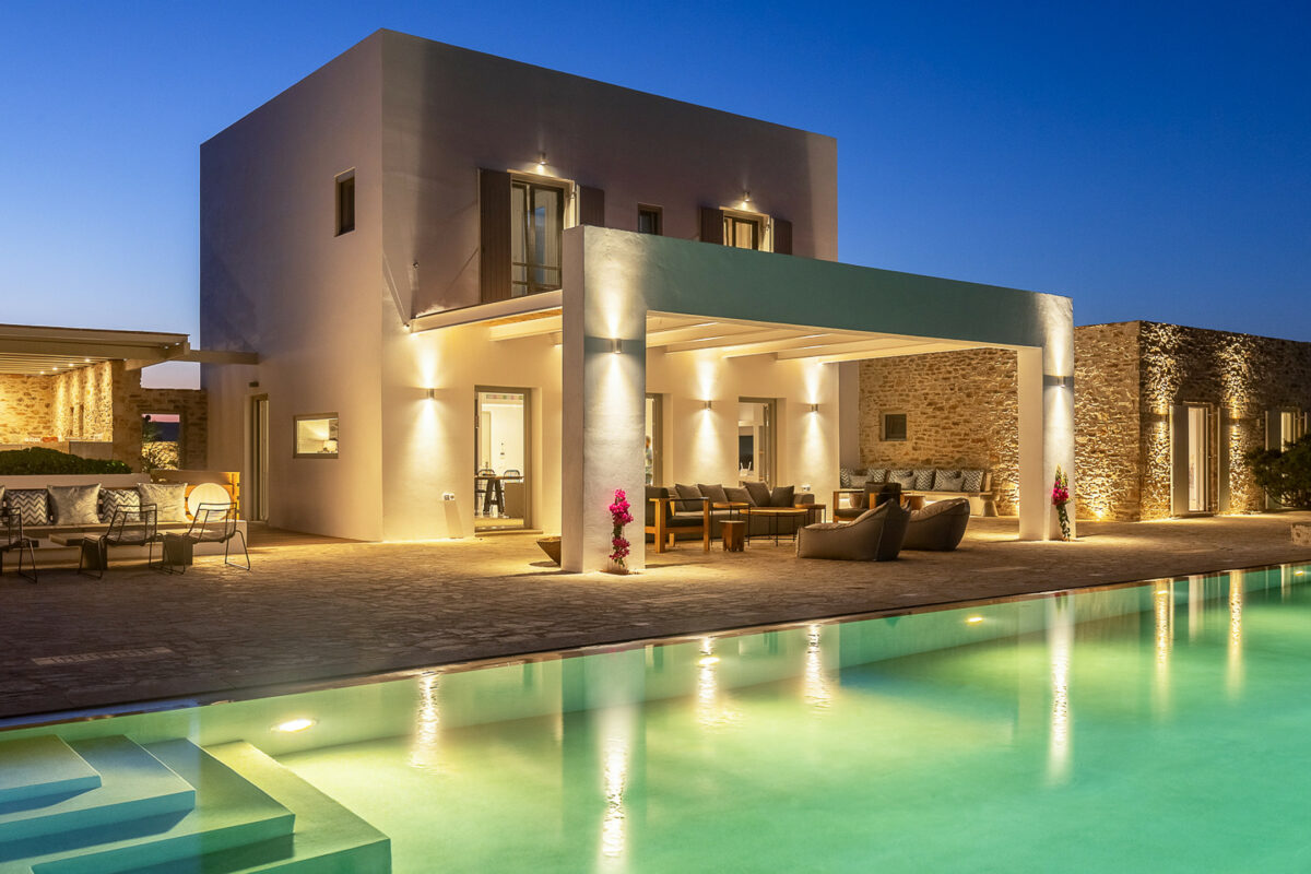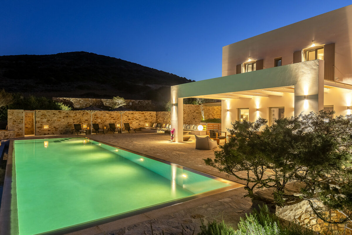 Nestled in the heart of Antiparos, Villa 10106 offers easy access to local tavernas and beautiful beaches. This modern retreat features a main house with five bedrooms and a cozy one-bedroom guesthouse, ideal for families and friends. The main house spans three levels, including a spacious living and dining area, a state-of-the-art kitchen, and several inviting bedrooms with king-sized and twin beds.