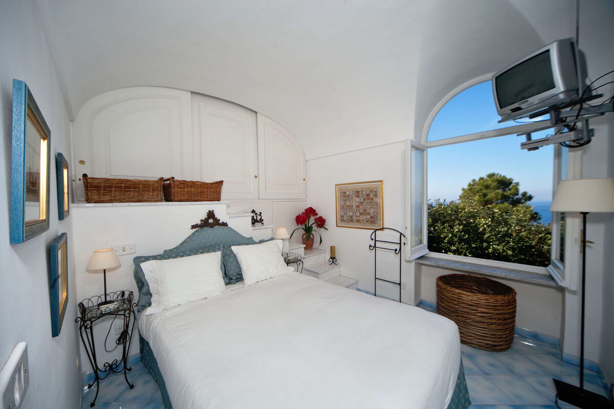 Caprese is a Mediterranean-style whitewashed villa nestled in a lush garden of pines, cypresses, and olive trees located on the Island of Capri near the famous Blue Grotto. Guests can experience the luxurious sophistication of the Island of Capri and a breathtaking panoramic view of the Bay of Naples in complete privacy at Villa Caprese. Within a short drive is Capri's legendary Piazzetta, where guests can join where locals and visitors enjoy glamorous shops, elegant dining, and fashionable nights out.