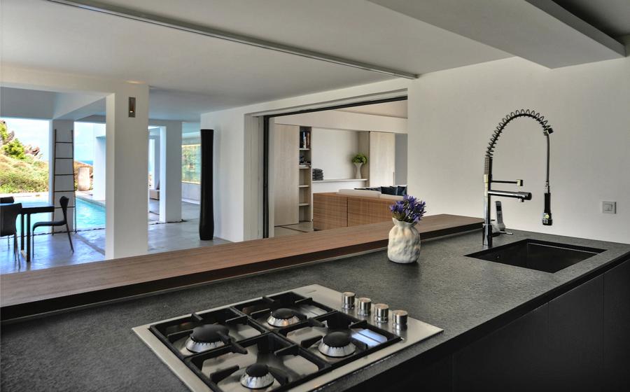 Characterized by its elegant tones of taupe and white, this fantastic villa delightfully blends chic and modernity. Step outside and enjoy either the sea or the swimming-pool.