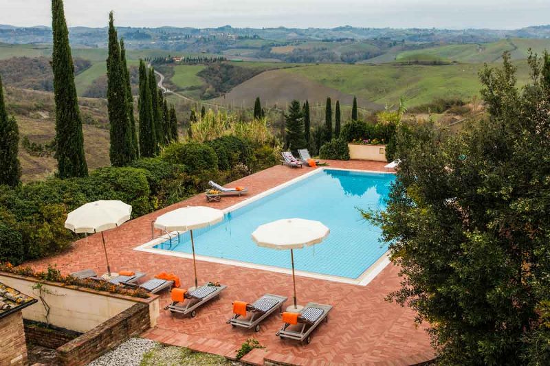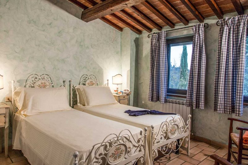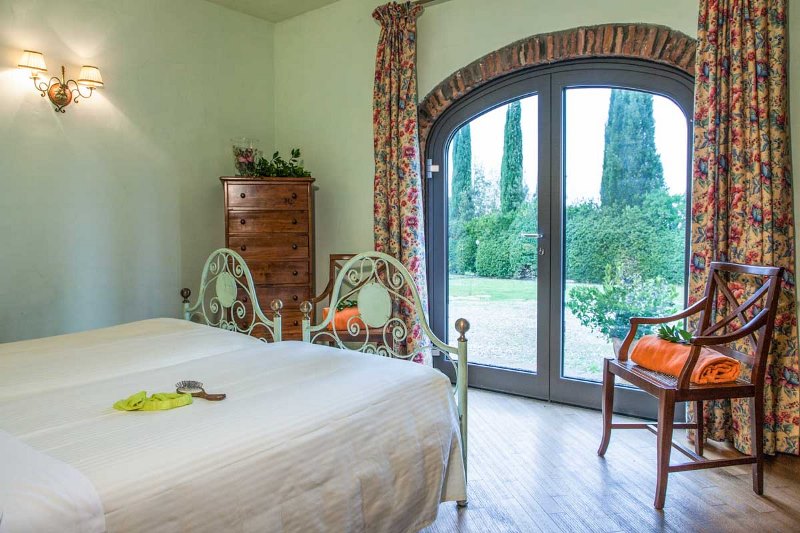 The villa is ideally located between Florence and Pisa, on a hilltop from where you can enjoy panoramic views. This region, named Chianti, is a wine-producing region of Tuscany. Its typical landscapes are emerald green hills, vineyards, olive groves, as well as chestnut, oak and cypress trees cutting into the skyline.