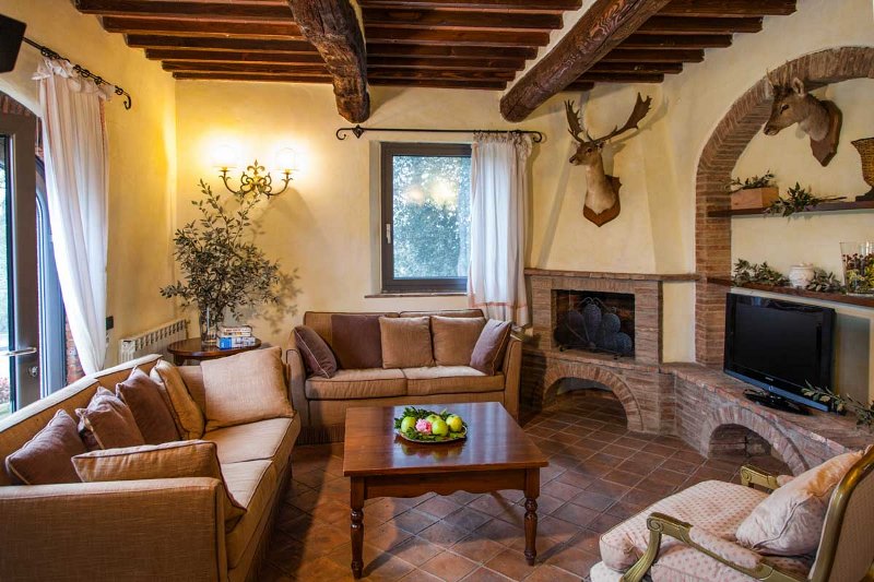 The villa is decorated in a high level of décor in Tuscan country style which creates an atmosphere of sophistication and elegance. One special characteristic is that the house has its private wine cellar. The place, spacious and comfortable, is ideal for families and friends gathering and to enjoy relaxing and luxurious holidays.