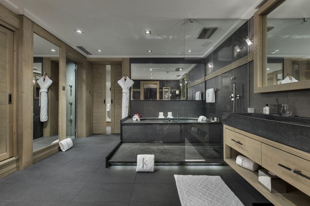 The ground floor is completely dedicated to wellness and features a swimming pool with waterfalls and steam room. The pool-side lounge area is the perfect place to relax and unwind after an active day on the slopes. Other features include a bar, library, a lift that serves all floors and all the modern amenities imaginable. Moreover, your experience at this luxury chalet can be improved with personalized services from butler, professional chef and housekeeper exclusively at your disposal.