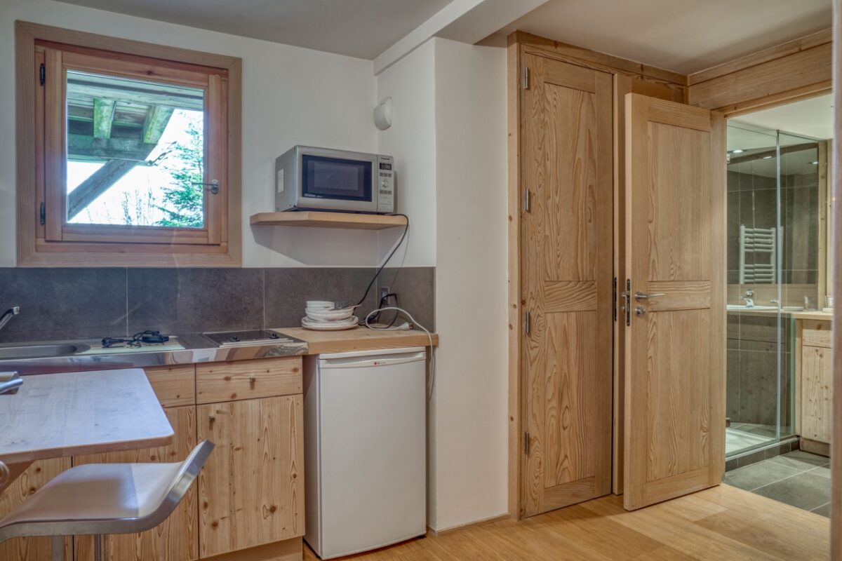 > Bedroom 6: Staff room with single bed (90 cm), small kitchen, en-suite bathroom with shower and sink