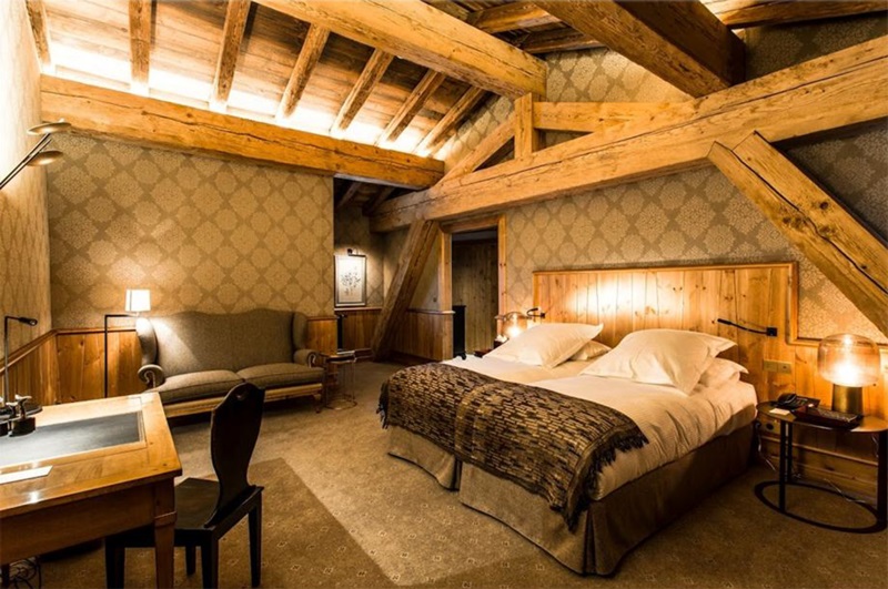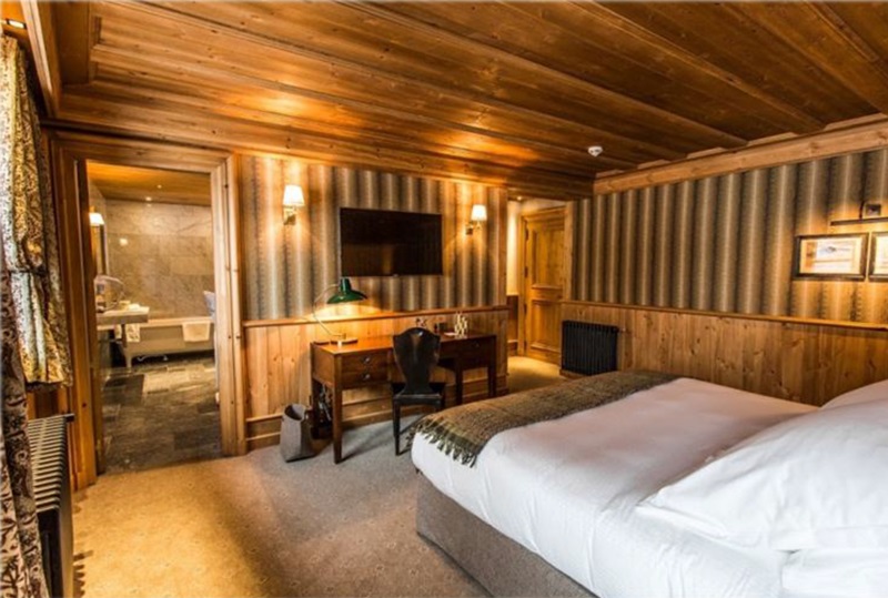 Le chalet Ambre offre cinq chambres situées sur les trois étages supérieurs. Ces chambres se distinguent par leur majesté et leur sophistication, combinant un style de chalet alpin traditionnel avec celui d'un grand manoir anglais, créant ainsi une atmosphère élégante. Chaque chambre est équipée de luxueuses salles de bains comprenant une baignoire et une douche. Enfin, le dernier étage abrite une chambre double isolée avec un balcon privé.