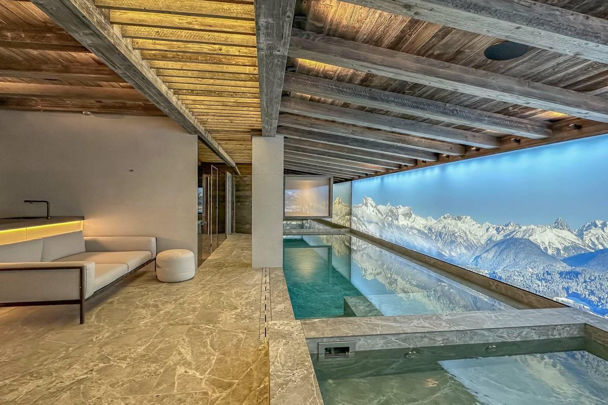 Swimming pool, jacuzzi, sauna & hammam, this chalet is fully equipped and will allow you unforgettable holidays in Courchevel 1850. Designed on 4 levels, the chalet consists of 6 bedrooms, which can comfortably accommodate 10 adults and 2 children.