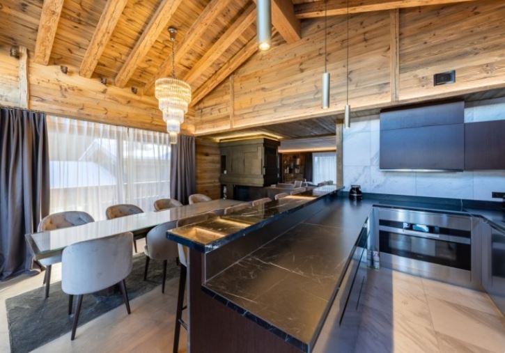 Ce chalet très luxueux peut confortablement accueillir 8 personnes. En effet, il dispose de 4 chambres doubles avec chacune sa salle de bain/douche ensuite. Retrouvez vous en famille ou entre amis auprès de la belle cheminée du chalet, puis finissez votre soirée en vous détendant dans l'espace SPA auquel vous avec accès. Le chef se tient présent pour vous satisfaire gustativement et vous assurer de bons diners.