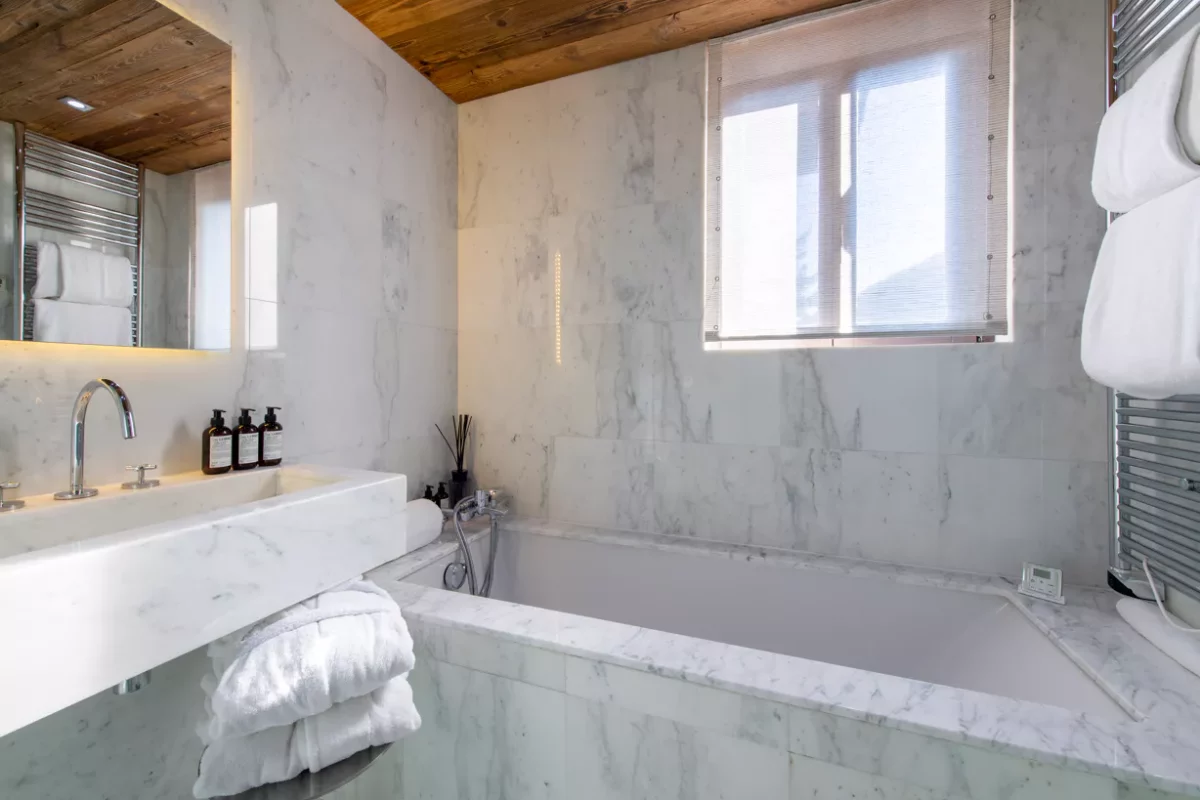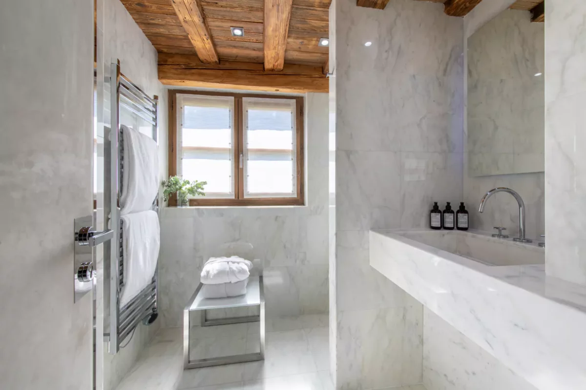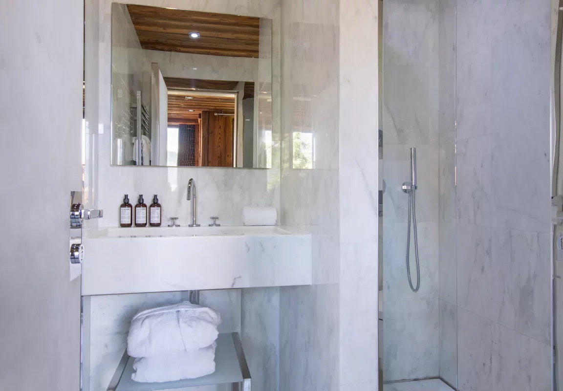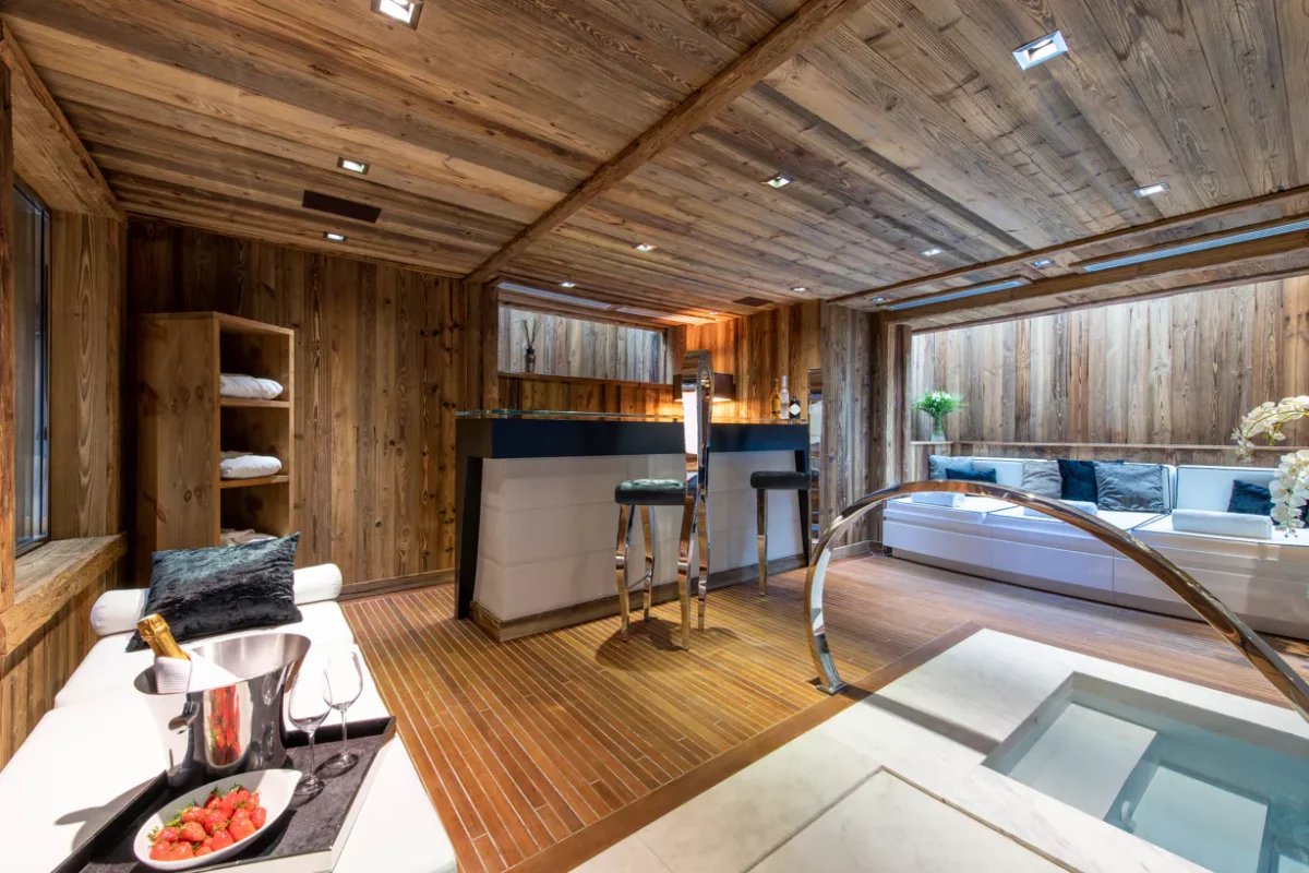 Le Chalet Carat de 300m² est répartis sur trois niveaux pouvant accueillir jusqu'à 8 personnes dans la propriété principale, mais il est possible de loger 2 personnes de plus grâce à un appartement dépendant qui comporte une chambre double et une salle de bain. Dans les étages inférieurs, vous trouverez une piscine intérieure au style marbre blanc, un bar, un espace spa, une salle de cinéma,, un sauna et une cave à vin n'attendent que vous.