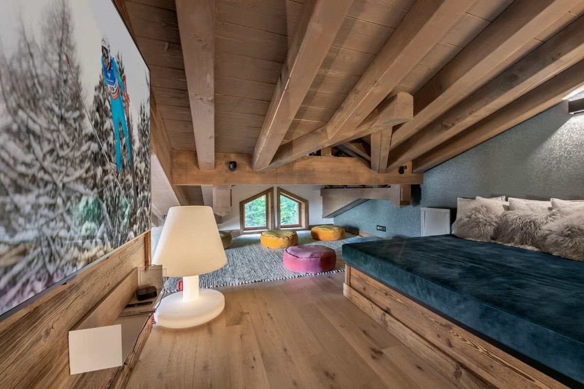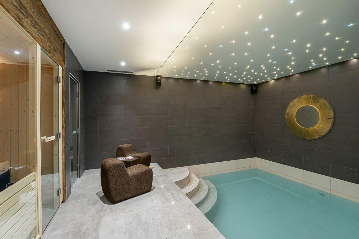 Equipé d'un ascenseur, d'une piscine intérieure, d'un jacuzzi extérieur, mais également d'un hammam, le Chalet Centenary ne manque de rien. En effet, vous pourrez profiter de son espace spa, mais aussi de son magnifique salon moderne avec ses larges baies vitrées et sa cheminée.