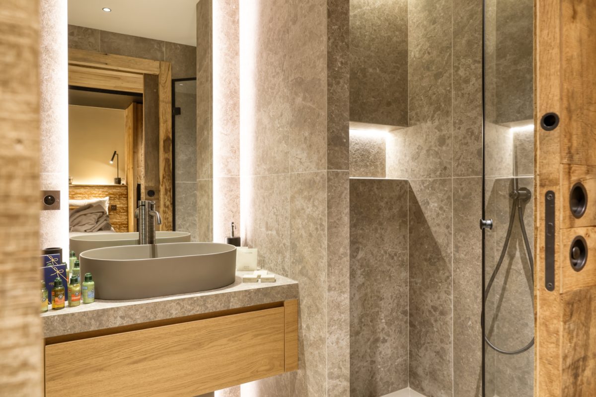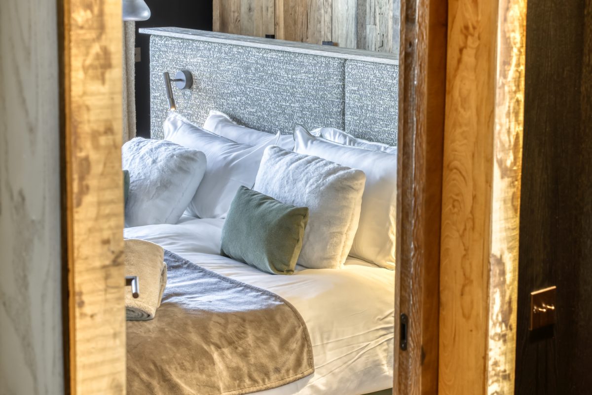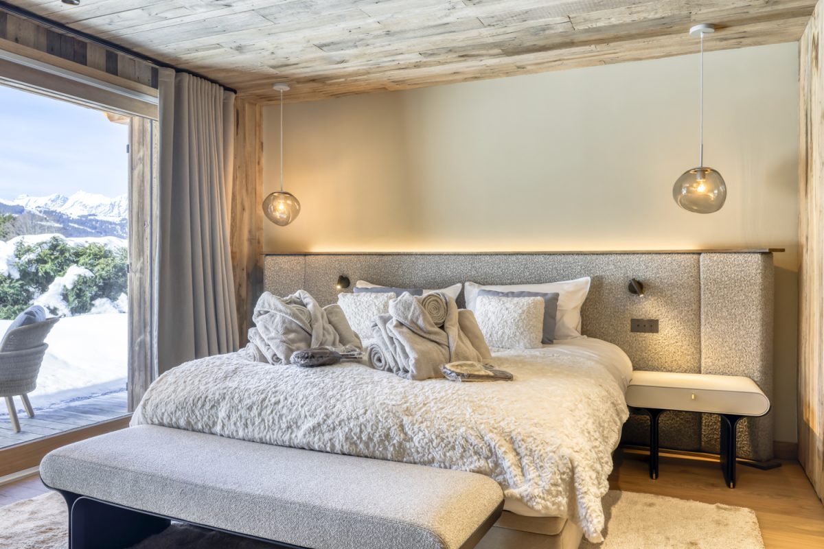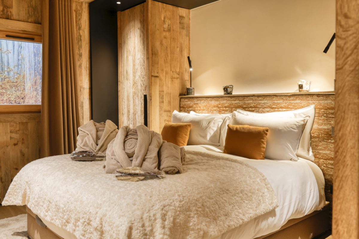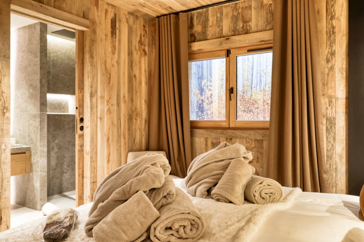 The chalet can accommodate up to 14 guests and offers 6 bedrooms, including a dormitory sleeping 4, ideal for family or groups of friends. The master suite, located on the top floor, occupies the entire level and provides complete privacy. An elevator serves all floors (except the master level), ensuring optimal comfort for all guests.