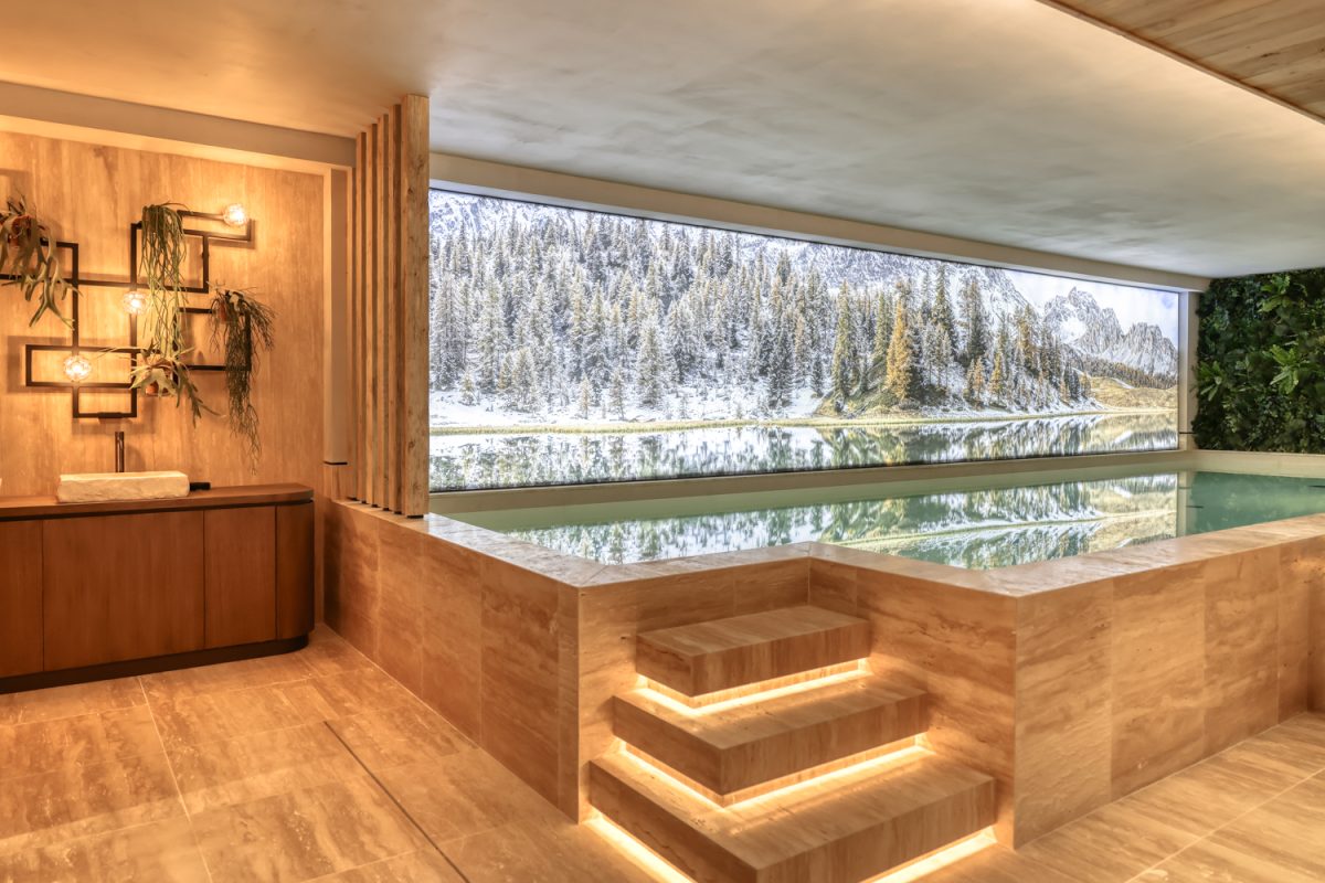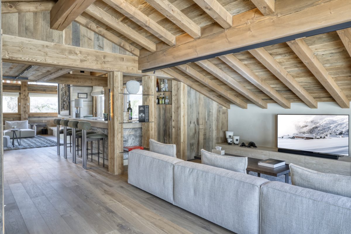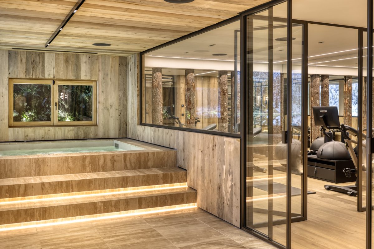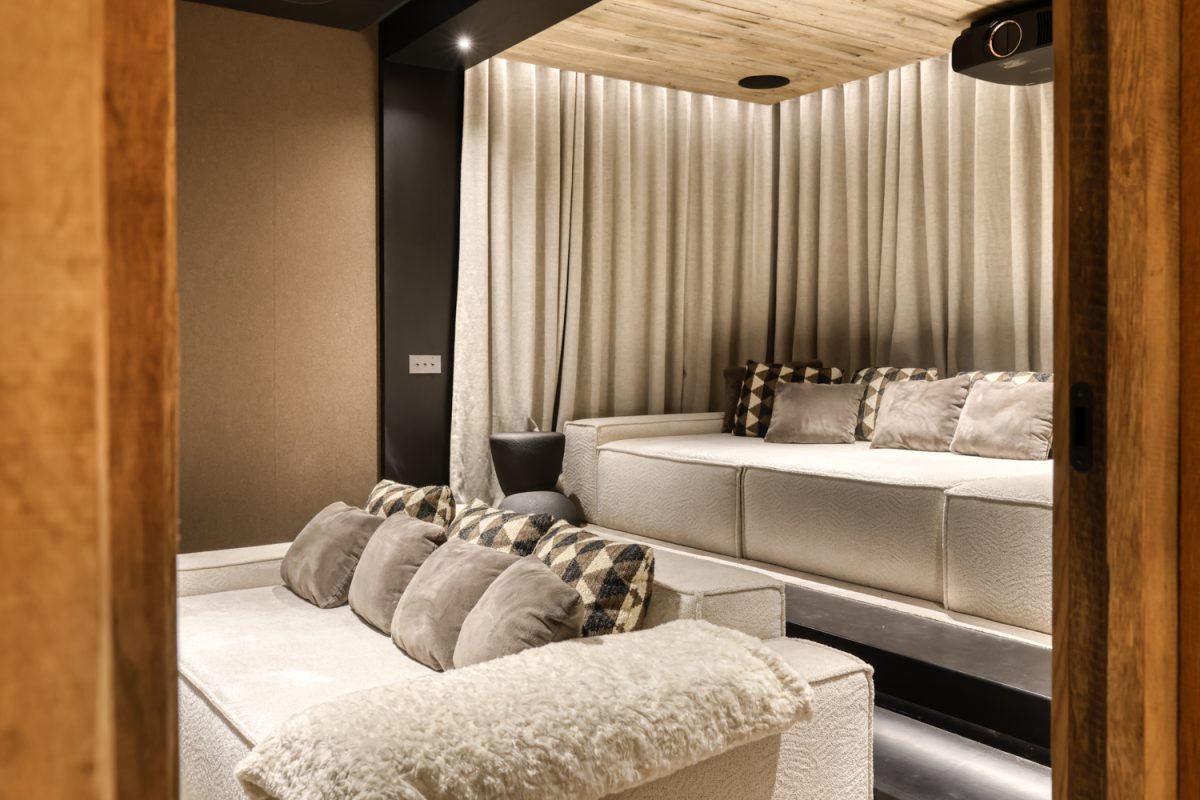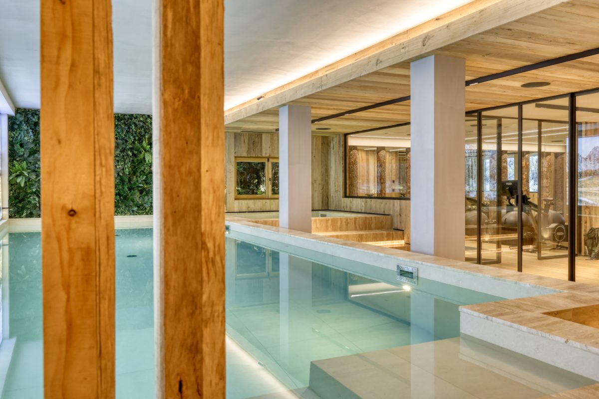 Designed for comfort and well-being, the chalet features high-end amenities, including an indoor swimming pool, a fully equipped fitness room for sports enthusiasts, and a home cinema for moments of pure relaxation. The spacious, bright, and welcoming living area is the heart of the home, perfect for gathering after a day in the mountains.
