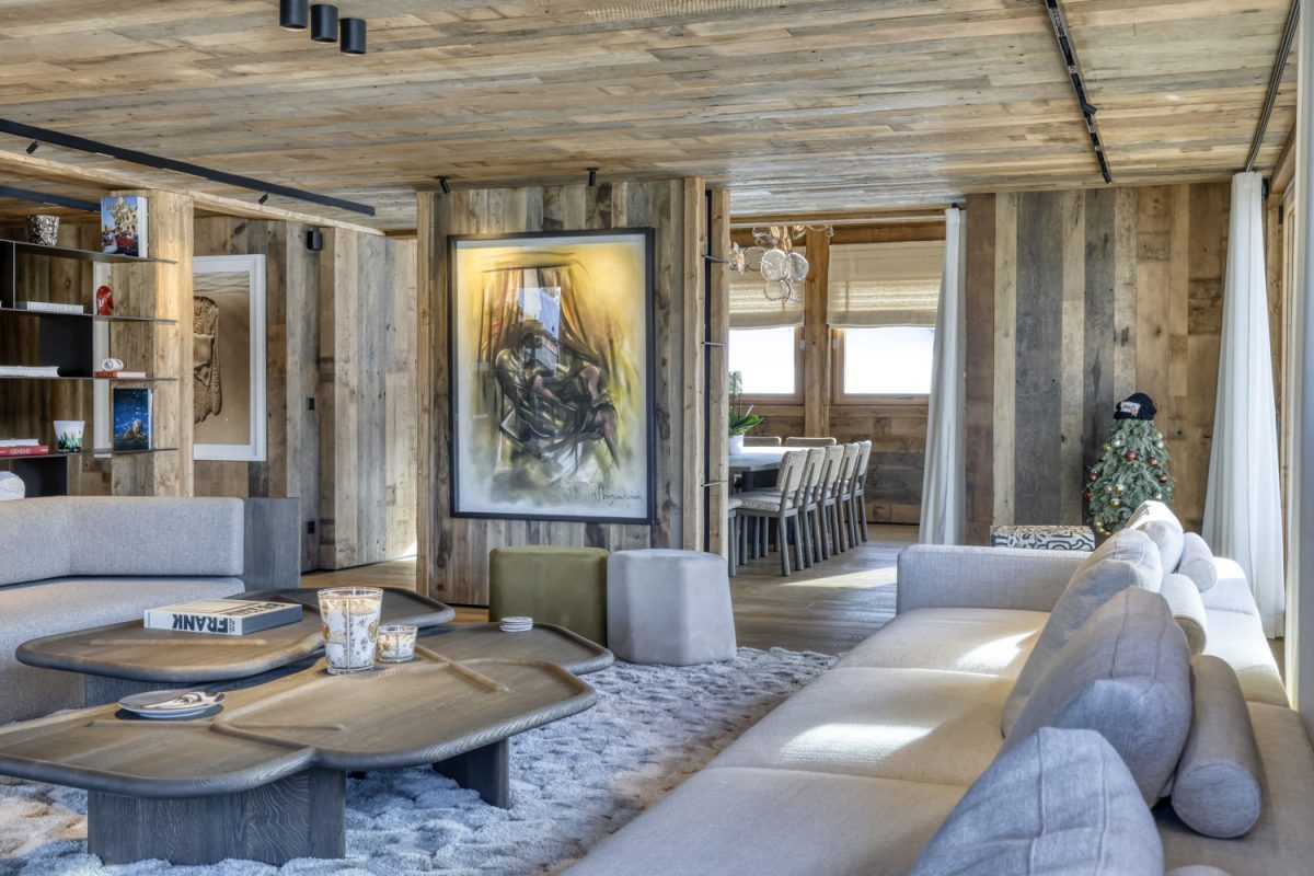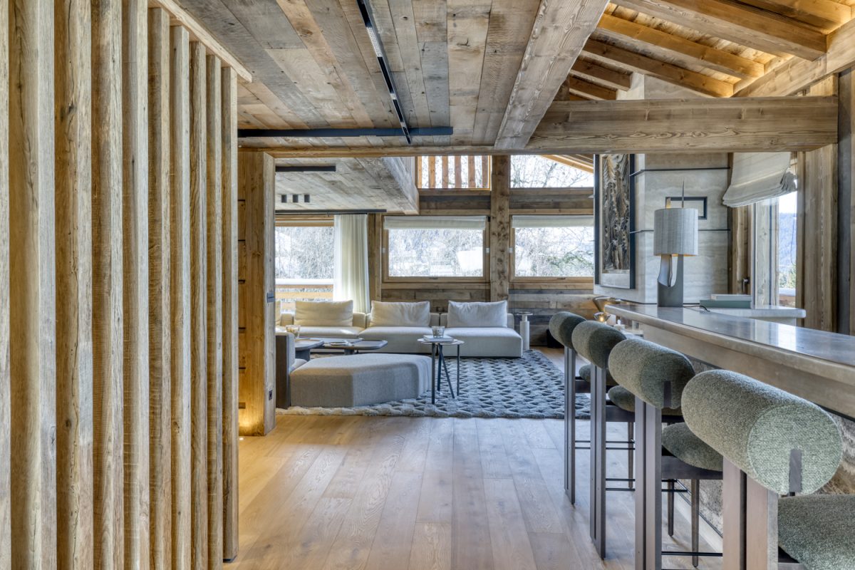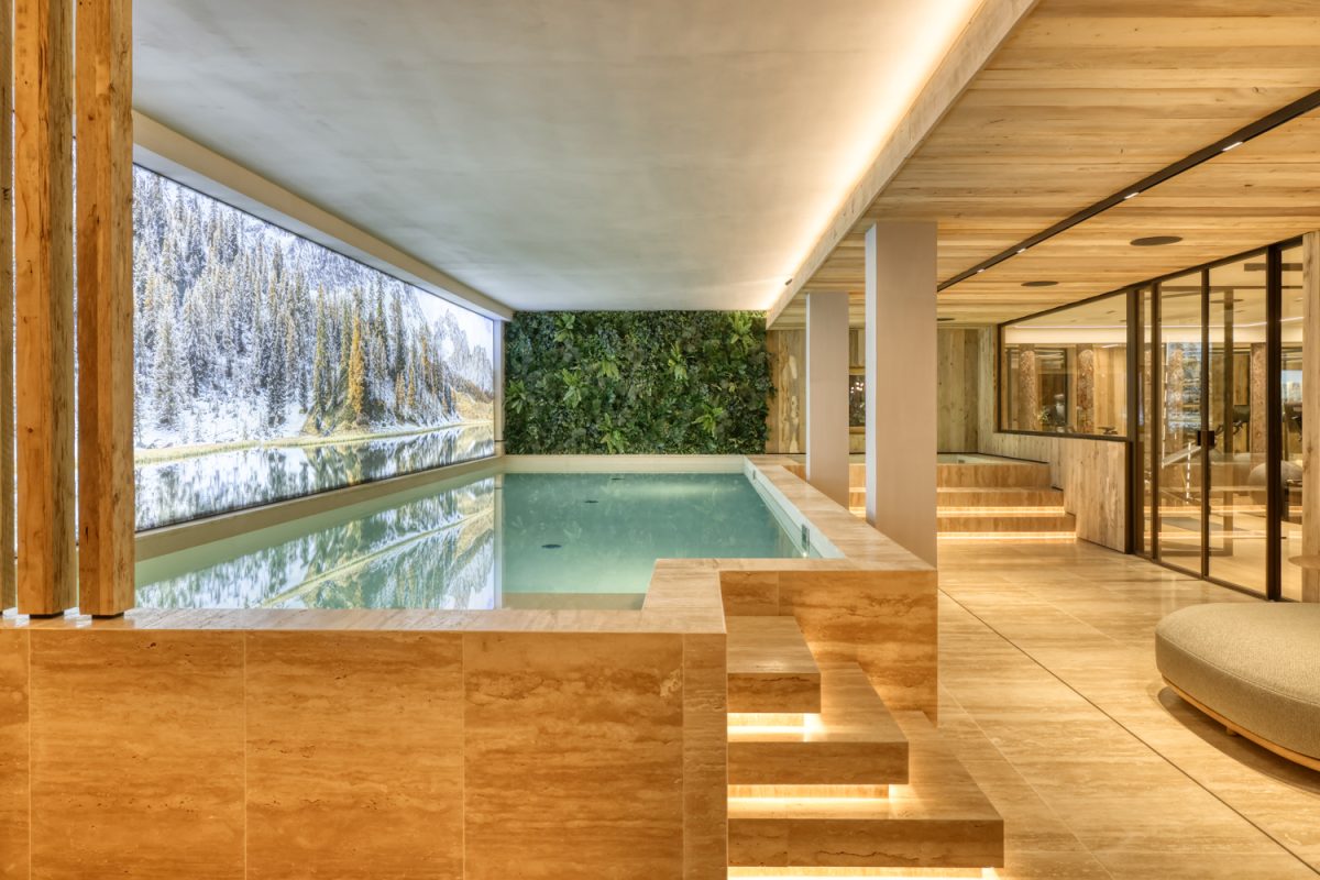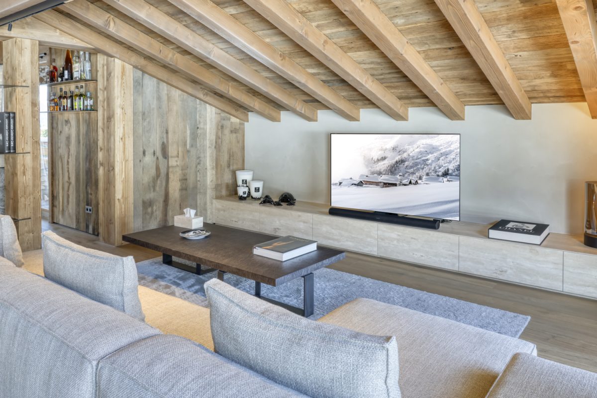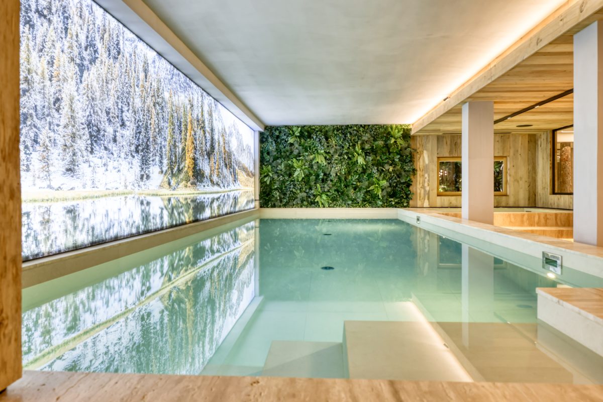 Designed for comfort and well-being, the chalet features high-end amenities, including an indoor swimming pool, a fully equipped fitness room for sports enthusiasts, and a home cinema for moments of pure relaxation. The spacious, bright, and welcoming living area is the heart of the home, perfect for gathering after a day in the mountains.