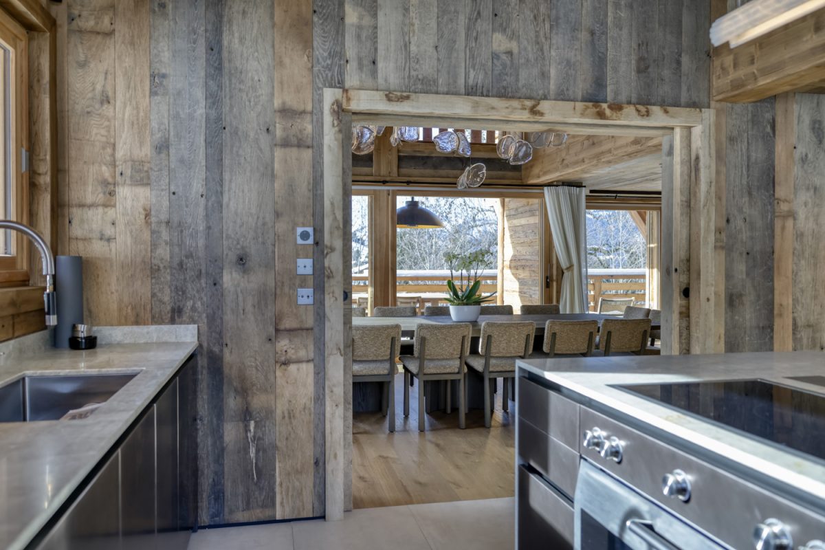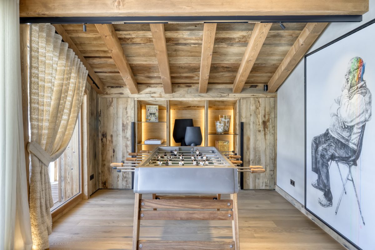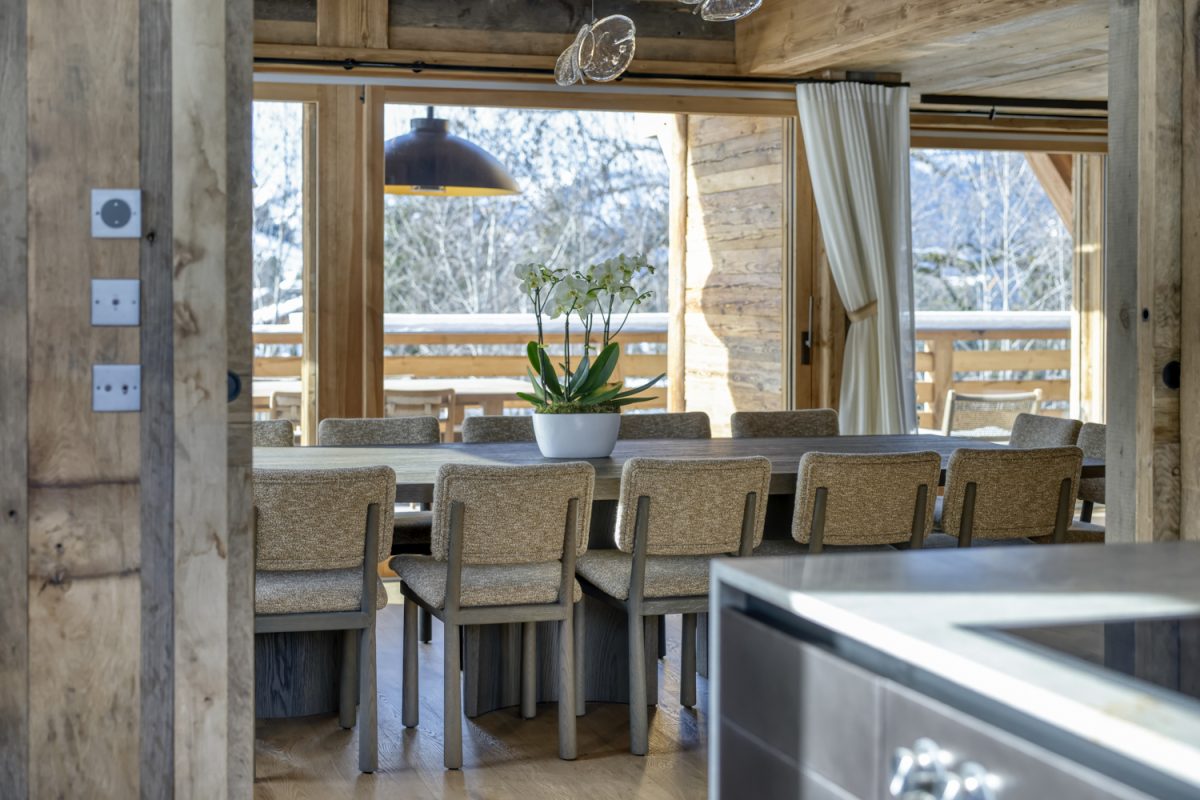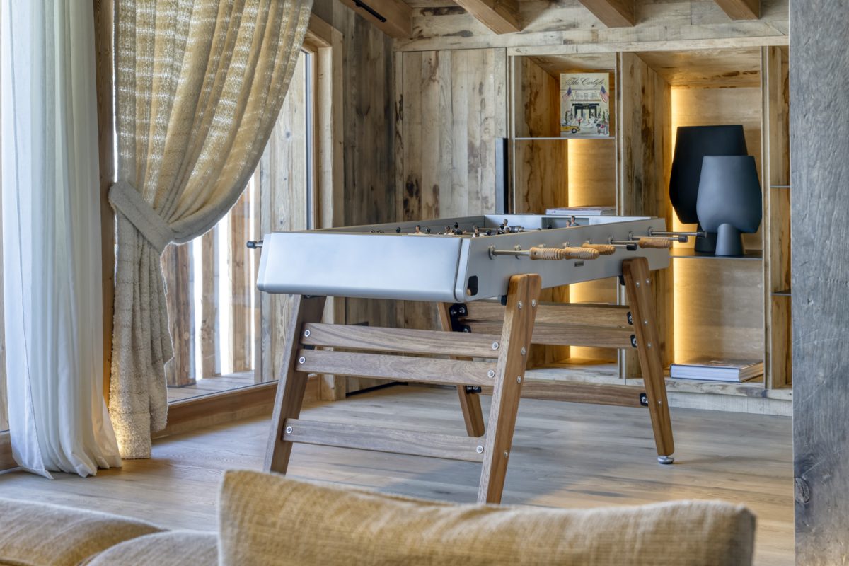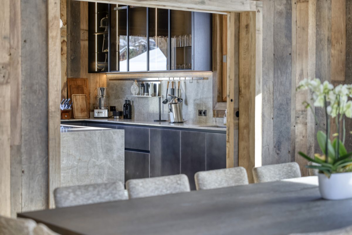 Designed for comfort and well-being, the chalet features high-end amenities, including an indoor swimming pool, a fully equipped fitness room for sports enthusiasts, and a home cinema for moments of pure relaxation. The spacious, bright, and welcoming living area is the heart of the home, perfect for gathering after a day in the mountains.