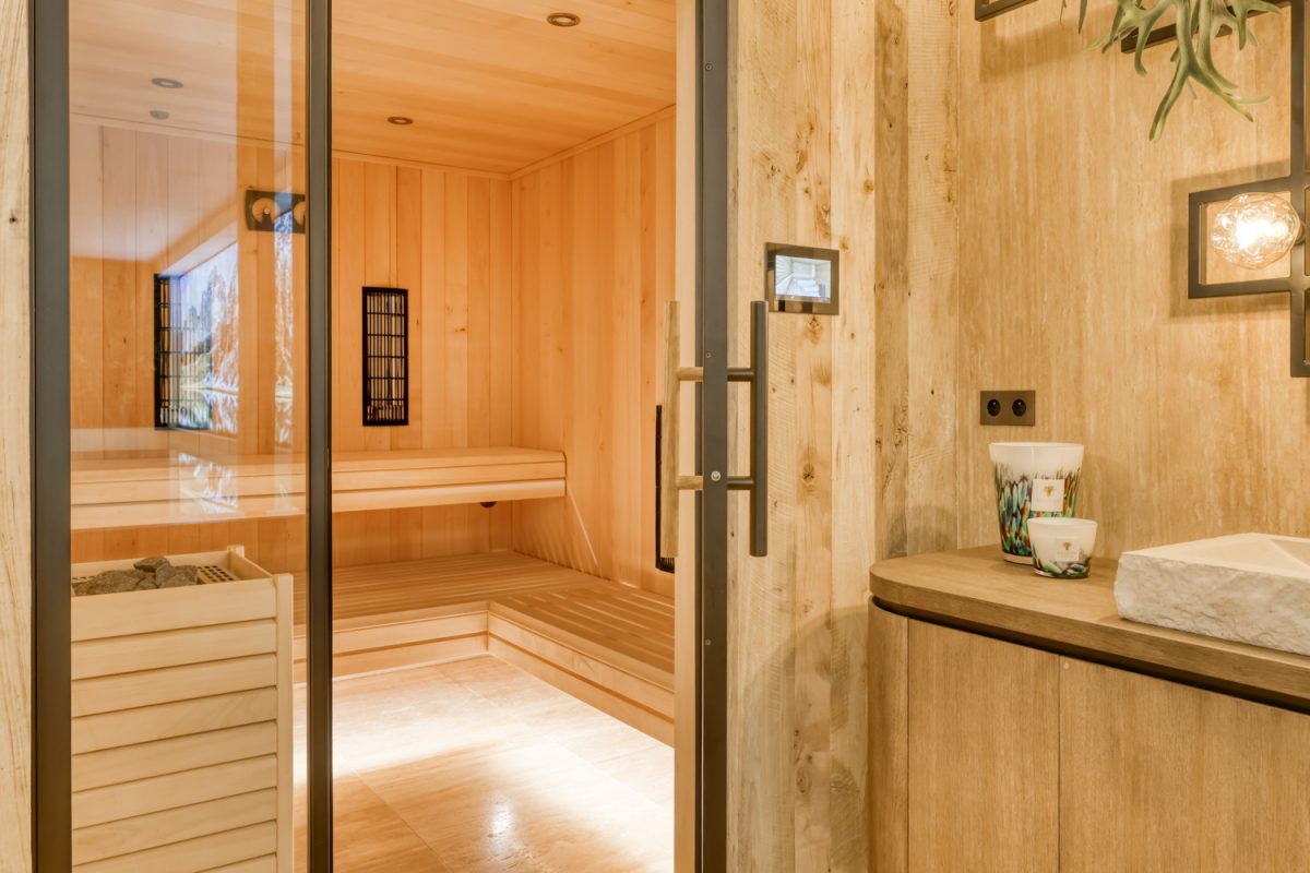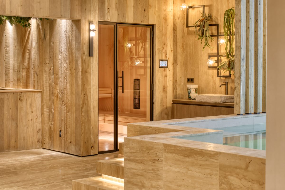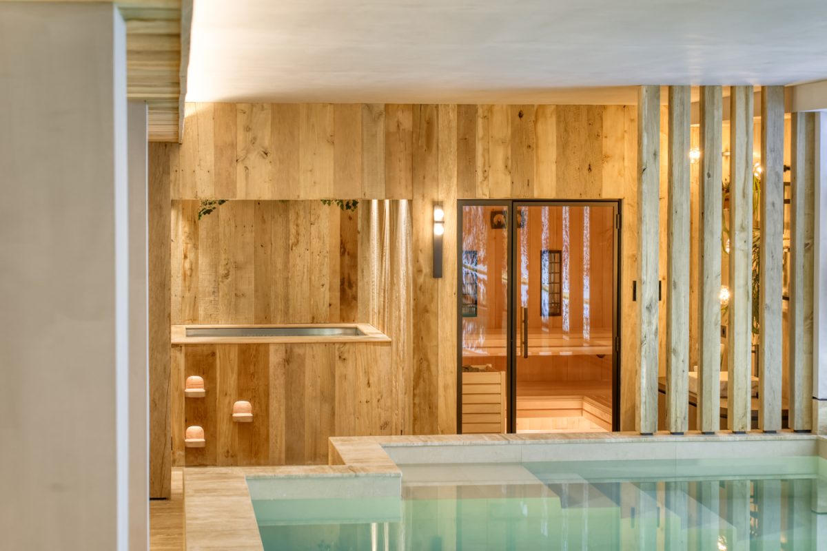 > Spa : heated pool, jacuzzi, cold plunge pool, sauna, shower, changing room with sink & separate WC with bidet shower
