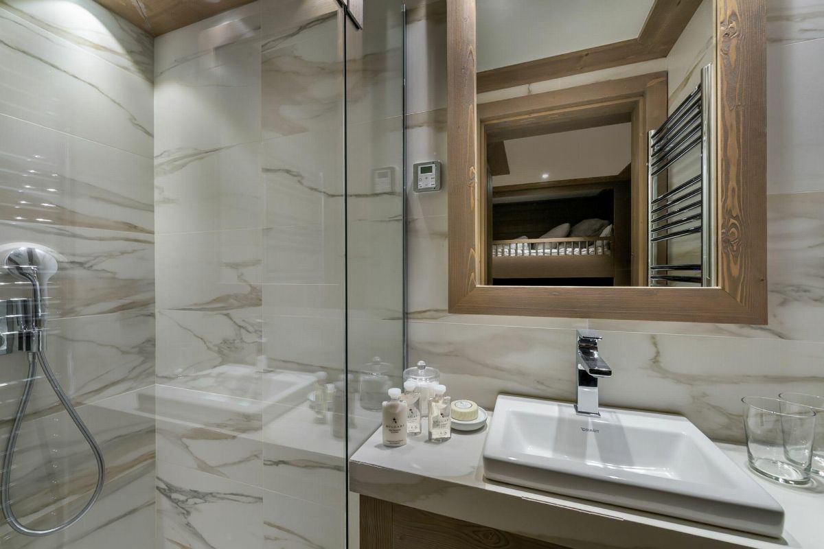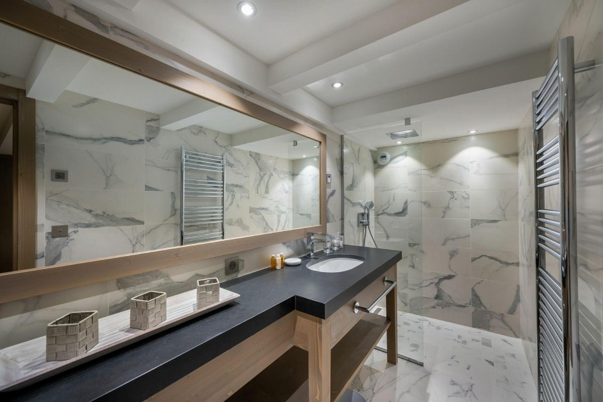 Five bedrooms make up the apartment, including three double bedrooms and two blind bedrooms, which can accommodate ten people. Each of the five bedrooms has its own bathroom.