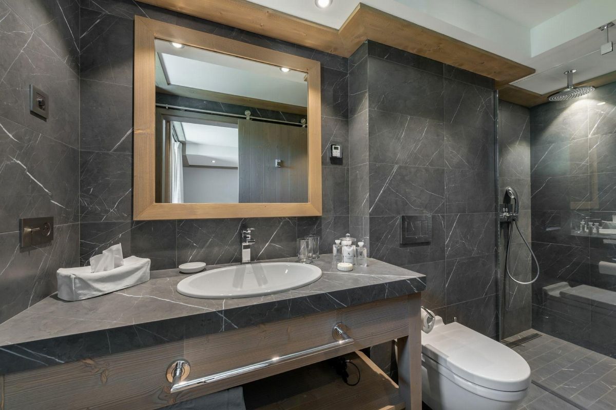 The Chalet is articulated around two raw materials: wood and stone. These materials perfectly represent the alpine style of construction, in addition to offering warmth and a cocooning style to the whole. The decoration and the contemporary furniture offer a contrast to the chalet, which gives it this special charm.