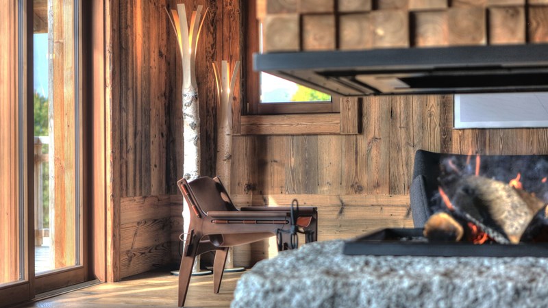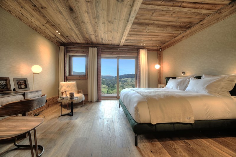 Réparti sur deux étages et d'une superficie totale d'environ 520 m², son agencement et sa décoration ont été méticuleusement conçus par le célèbre designer international Charles Zana, pour allier le charme intemporel de Megève au chic alpin contemporain.