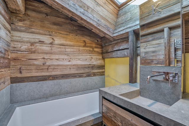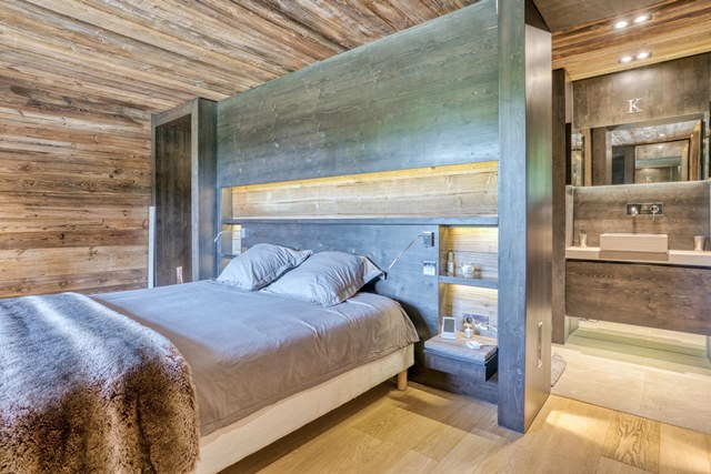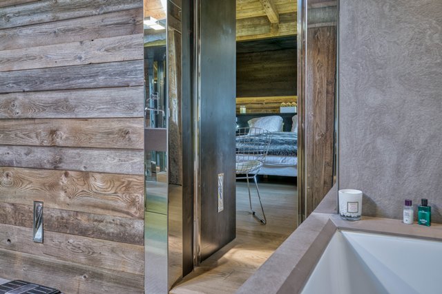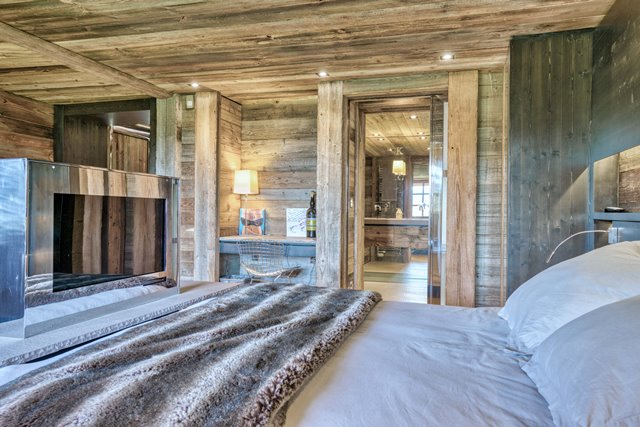 > Bedroom n°7 : double bed 180cm, TV, balcony, ethanol fireplace, bathroom with bathtub, shower & toilet