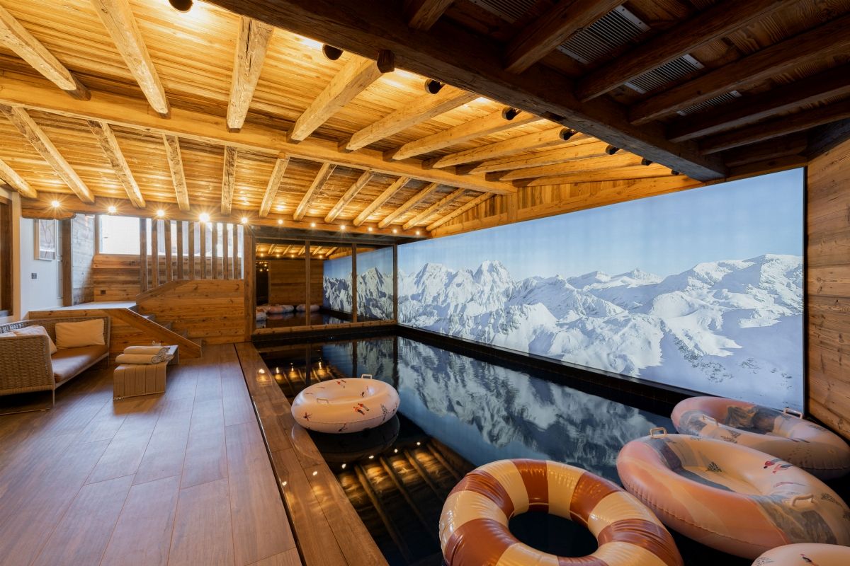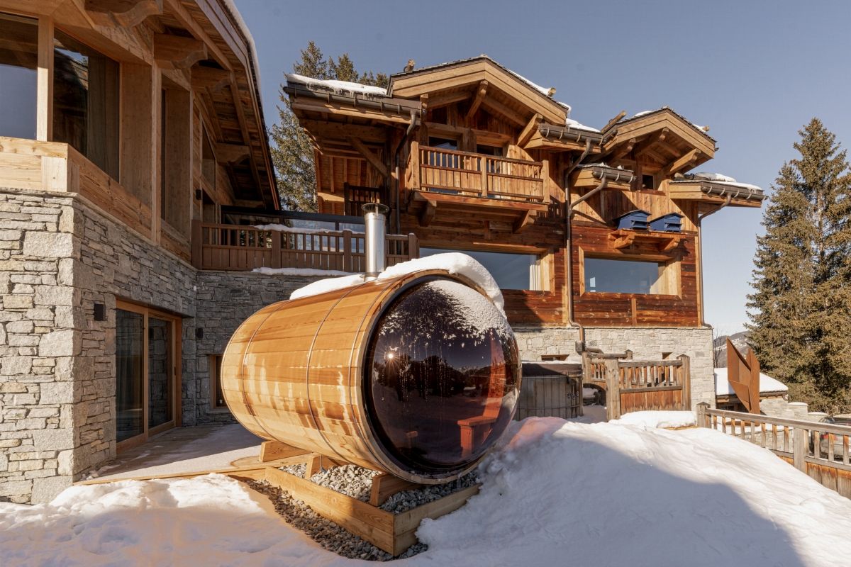 This chalet includes all the equipment necessary for perfect mountain vacation. Indeed, after a great day on the slopes, you have a ski room where you can store your skis and all your equipment. Then, you will have the choice between relaxing in the Chalet's SPA area, watching a film in its TV room, warming up near its beautiful central fireplace, or doing your daily sport in its fully equipped gym. . Finally, the chef will be happy to prepare excellent dishes for you throughout your stay, accompanied by his Hotel Maitre who will make your stay perfect from the beginning to the end.