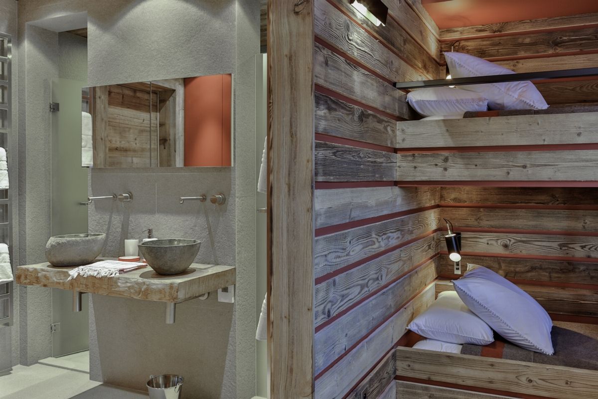 > Bedroom n°6 (dormitory) : Children's room with 2x2 bunk beds 90cm, bathroom with