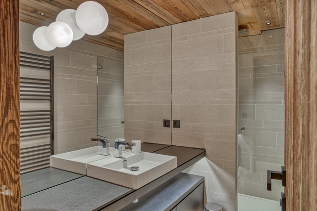 > Chambre n°6 (master) : Lit double (180 cm), TV, salle de bain avec douche et baignoire, double vasque et toilettes