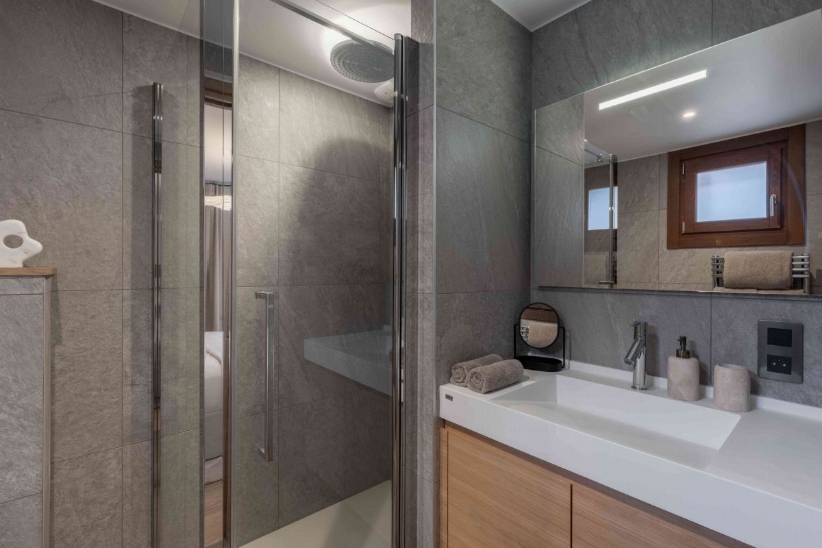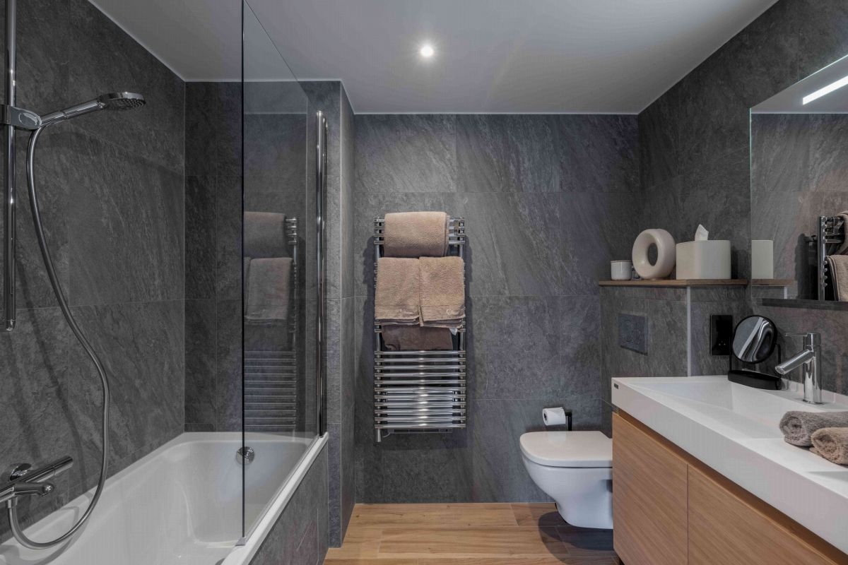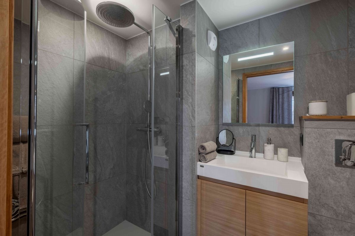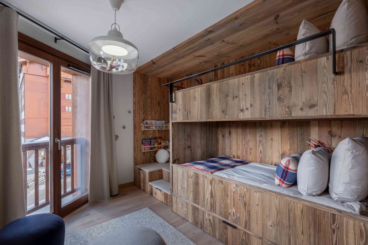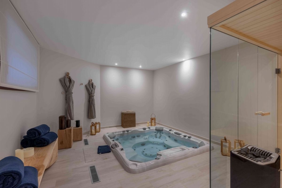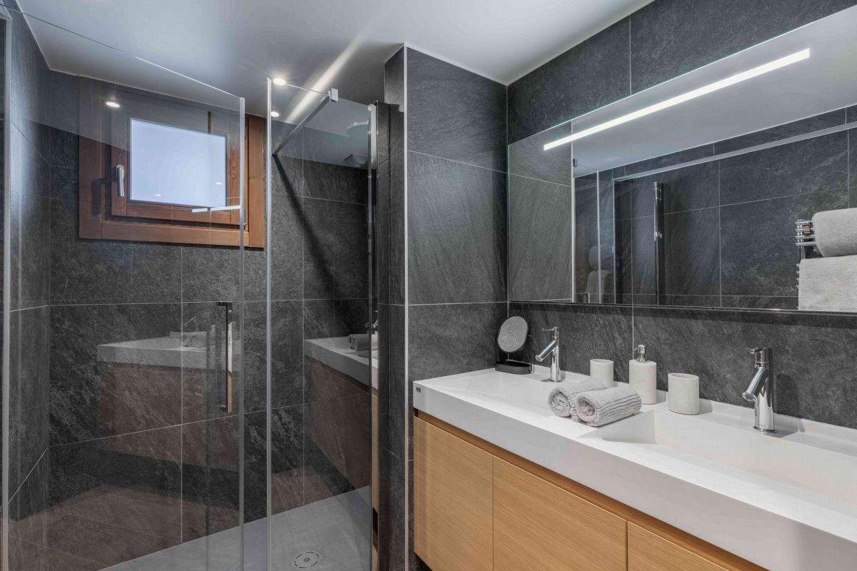 Réparti sur quatre étages reliés par un ascenseur, le chalet Goyard peut héberger jusqu'à 12 invités. Le rez-de-chaussée comprend une salle pour les équipements de ski, une buanderie et un espace de détente avec sauna, jacuzzi et douche. Les deuxième et troisième niveaux abritent six chambres, chacune dotée de sa propre salle de bain. Le dernier étage, sous les combles, accueille l'espace de vie principal. Vous y trouverez une cuisine, une salle à manger et un salon dans un grand espace ouvert.