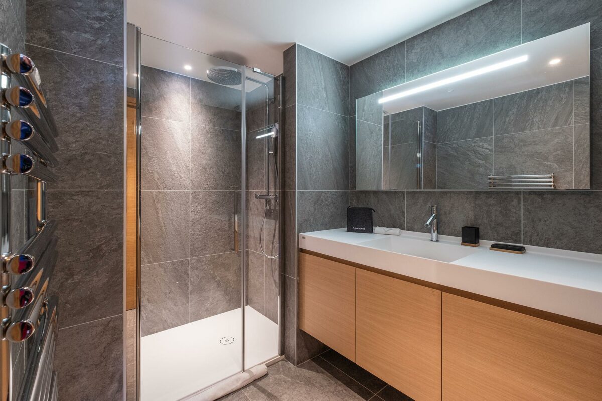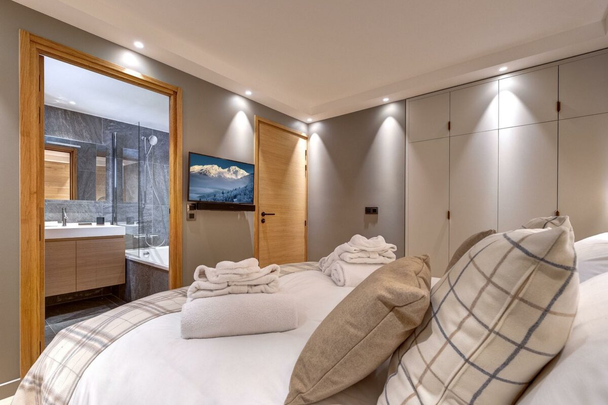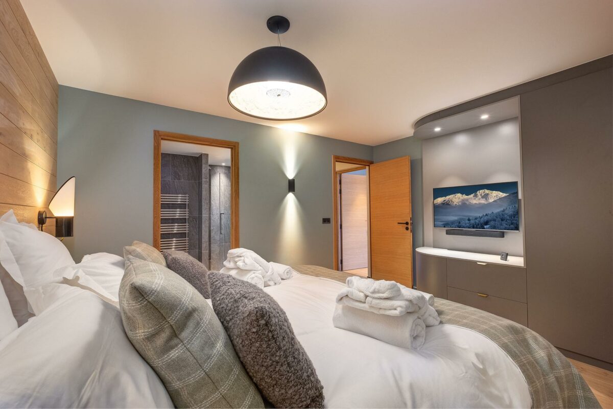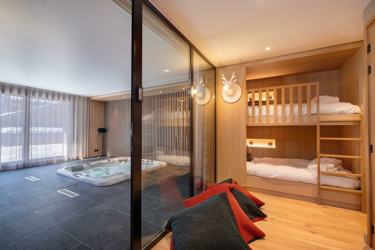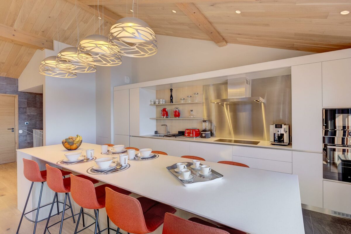 L’intérieur de ce chalet allie parfaitement modernité et fonctionnalité, avec une esthétique épurée et des équipements haut de gamme, garantissant un séjour de luxe en montagne. Dans un espace à la fois convivial et raffiné, la cuisine avec îlot central, la salle à manger et le salon se fondent sur un vaste plan ouvert, invitant à des moments de partage inoubliables.