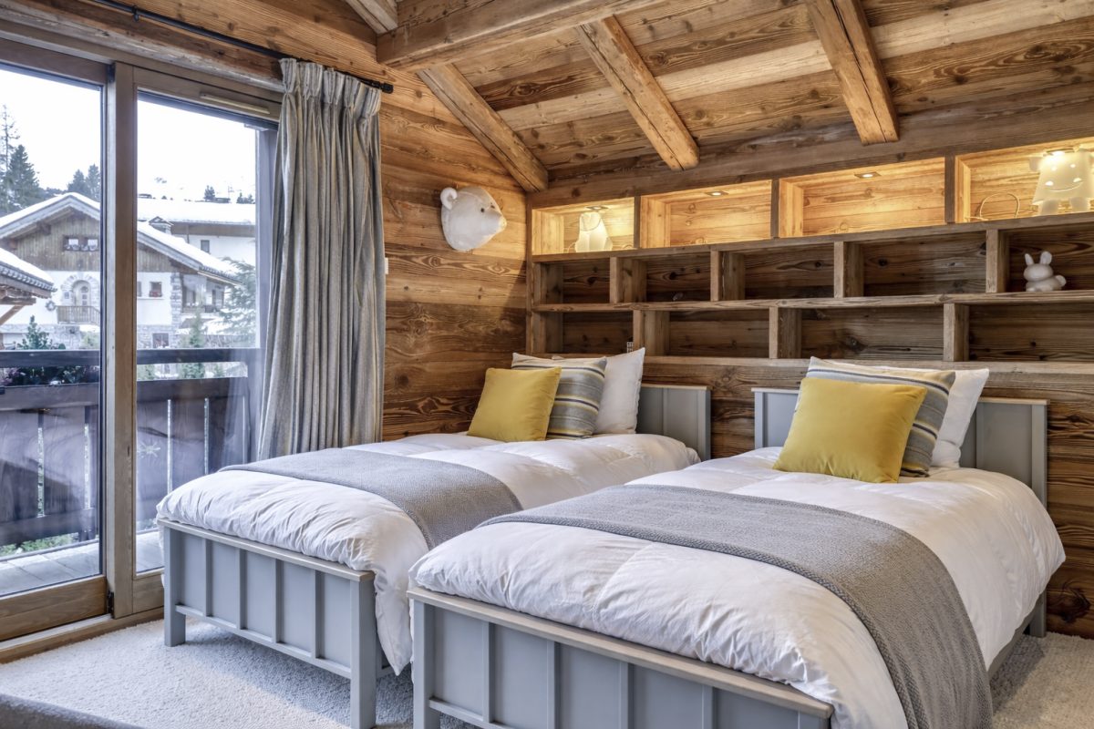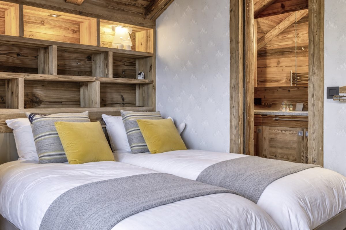 > Bedroom n°2 : Two single beds 90cm, closets, safe, printer, balcony, en-suite shower room with sink and WC