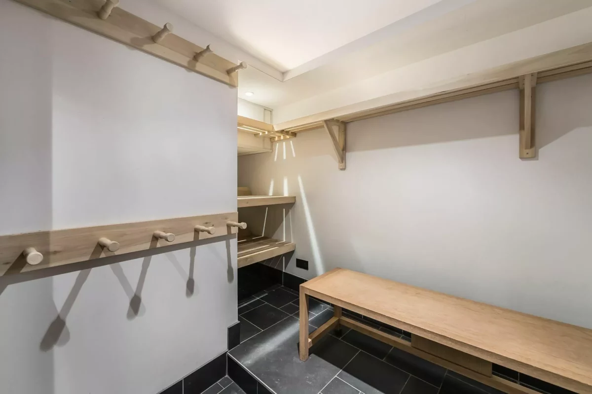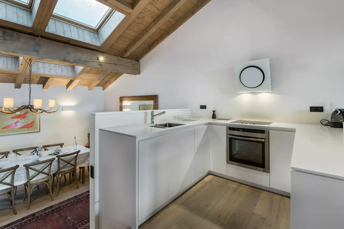 A l'intérieur, la décoration est toute aussi impressionnante avec le mobilier en bois et les cheminées présentent dans les deux salons. L'une des cuisines à été transformée en bar à cocktails pour offrir un bon moment après avoir passé une journée sur les pistes.