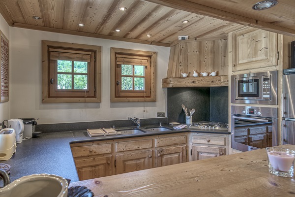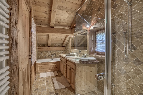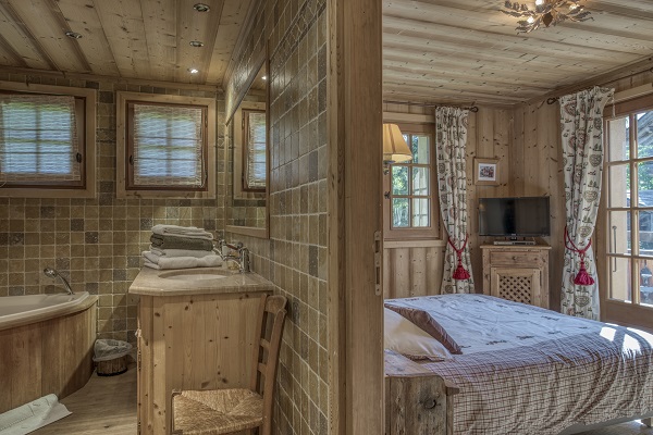 The chalet is designed in a traditional architectural style with wood. All the rooms have their own bathroom. The living space is very pleasant thanks to its fireplace corner and its kitchen open to the living room.