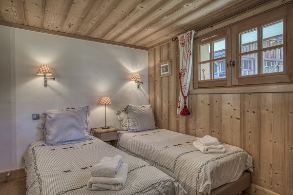 > Bedroom n°2 : Twin beds (90) equipped with a bathroomwith bathtub