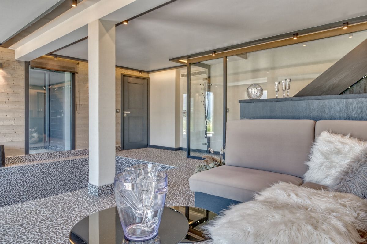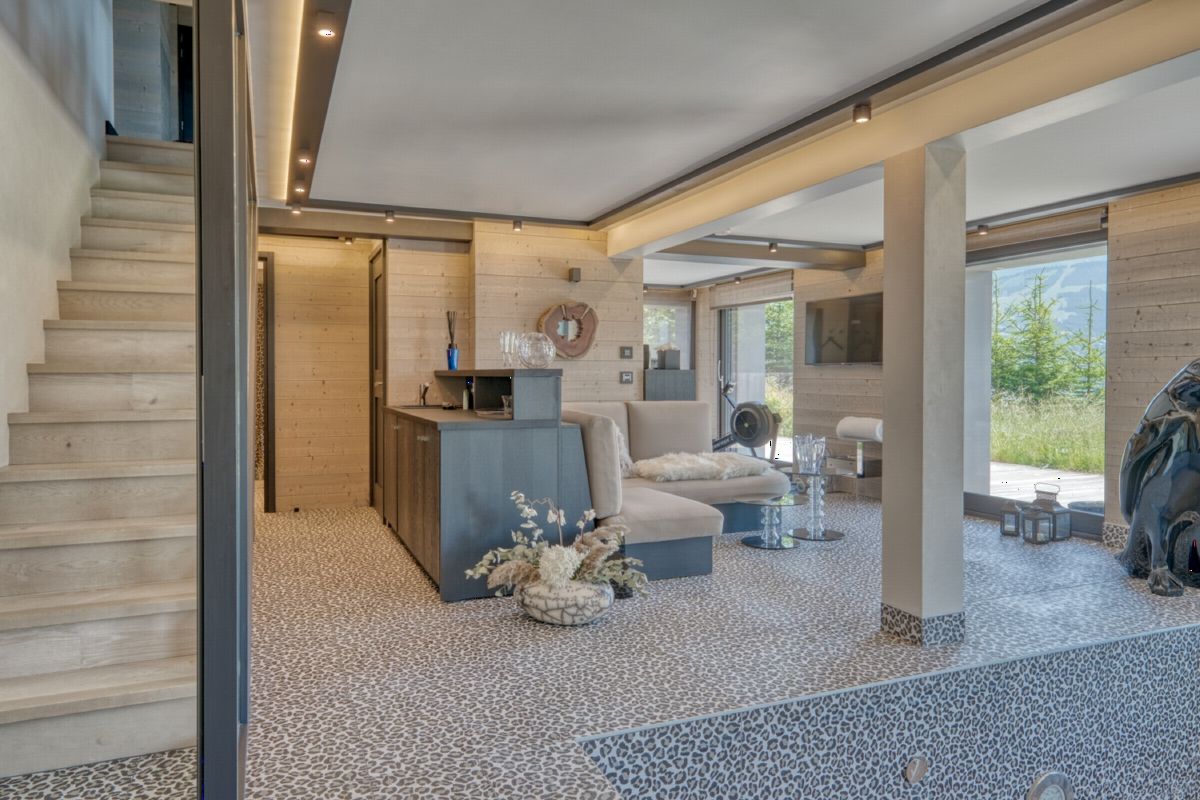 This luxurious chalet is the ideal place to meet and spend holidays with family or friends, the dark decoration and the works of art blend perfectly and make the chalet exceptional. The pool area will seduce you with its originality, and its view overlooking the outside.