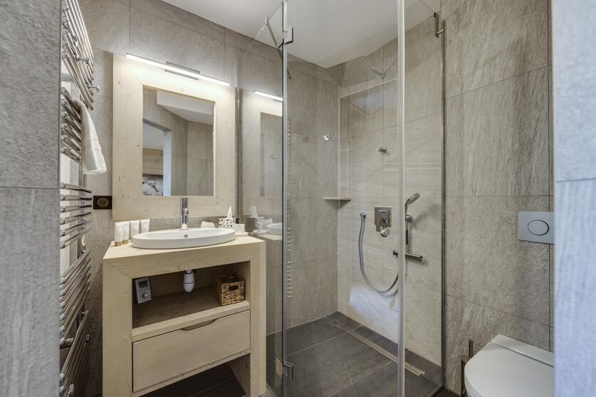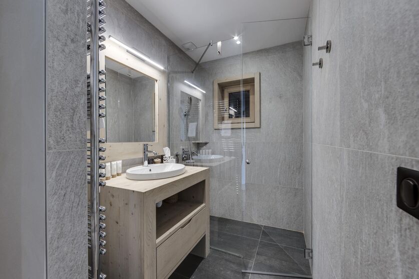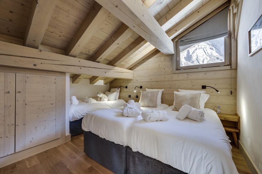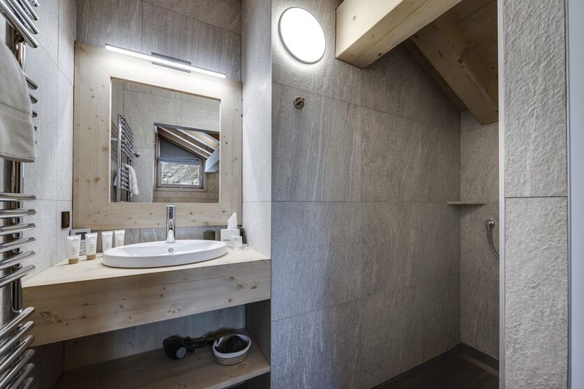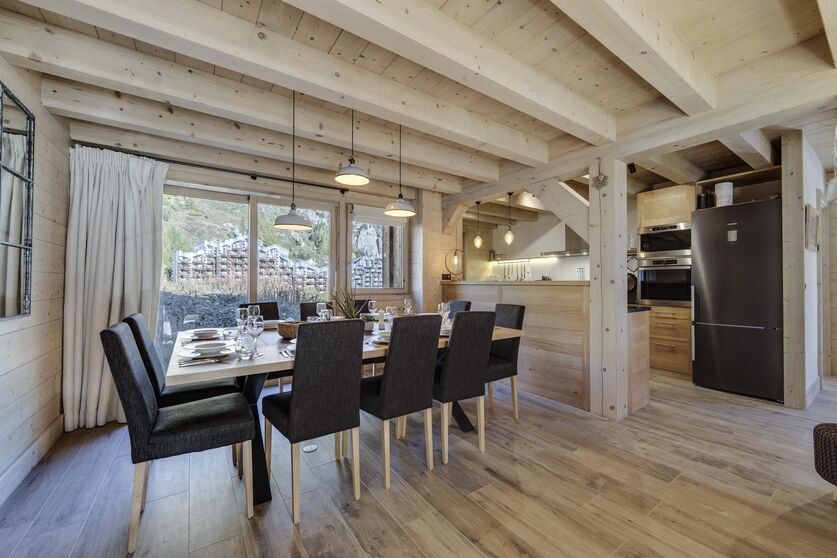 The exterior of the chalet perfectly represents traditional Avaline constructions with an assembly of raw wood and stone. Once through the front door, we remain within the same architectural codes but this time with a light wood which brings more brightness and modernity, while retaining this soul of Alpine construction. The contemporary design present in the furniture blends perfectly with this warmer and traditional style.