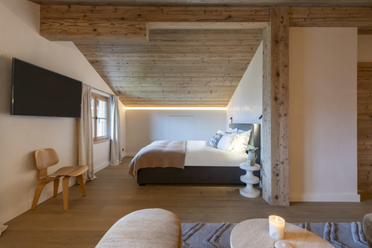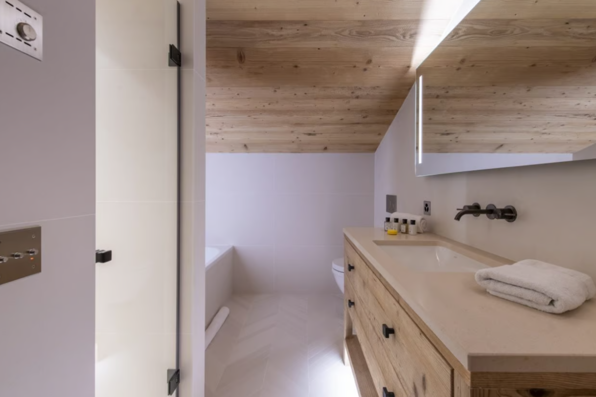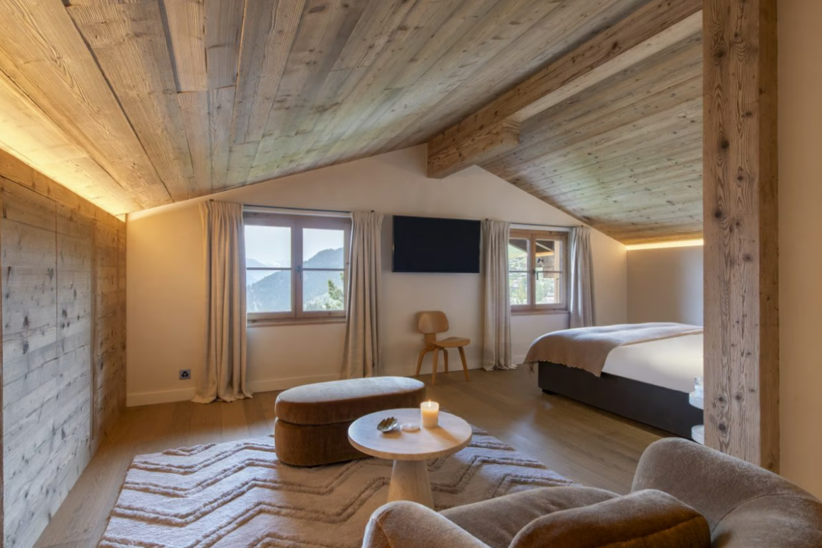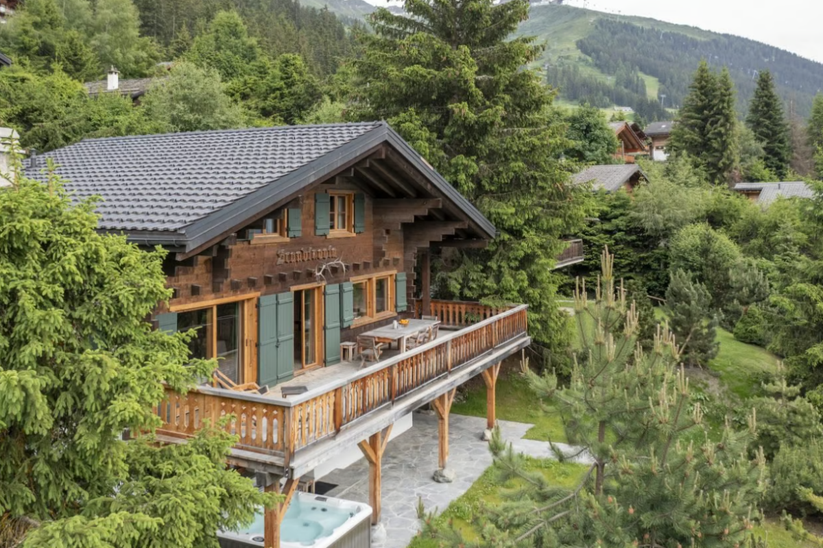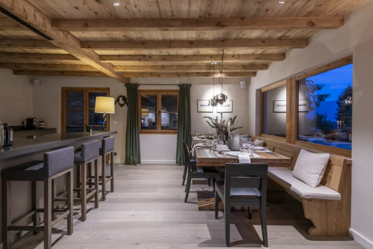 Chalet Scandinavia is a beautiful retreat in Verbier, sleeping up to eight guests located just a few minutes' walk from Les Esserts piste and a 5-minute drive from the Médran lift station. This stunning dark wood chalet, complemented by pine green shutters, offers a true alpine contemporary experience, blending seamlessly with its natural surroundings.