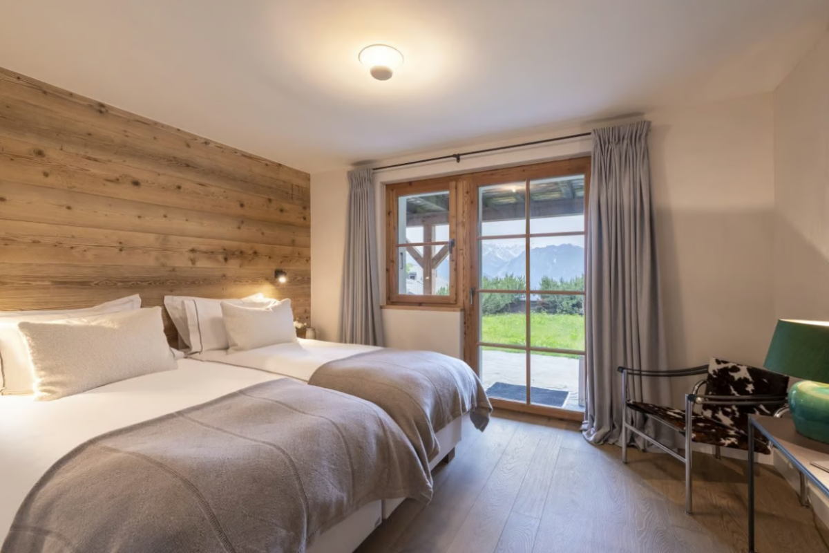 > Bedroom n°2 : twin/double bedroom (en-suite bathroom, terrace access, TV)