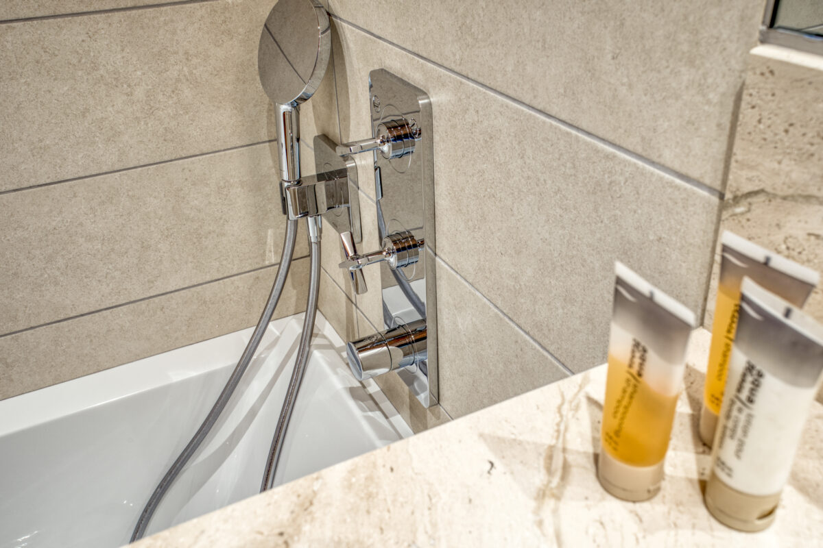 baignoire et douche, ainsi qu'un coin bureau et un dressing