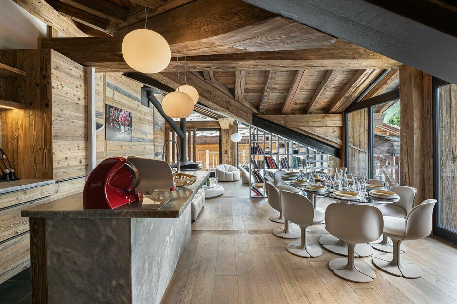 Located in the center of the village of Val d'Isère, and 350 meters from the Front de Neige lift, you will be seduced by the practicality of this chalet.