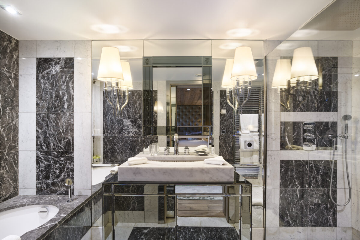 salle de bain ensuite (douche, baignoire, simple vasque, WC)